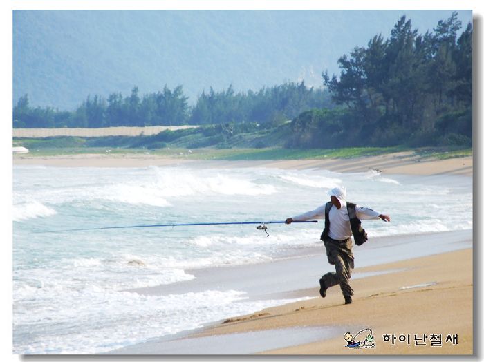 중국 하이난 백사장 원투낚시