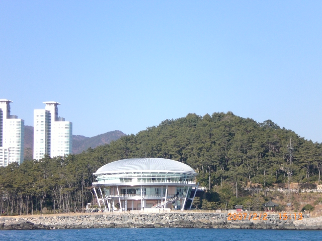 바다에선 본 동백섬 에이벡 건물 부산의 자랑입니다