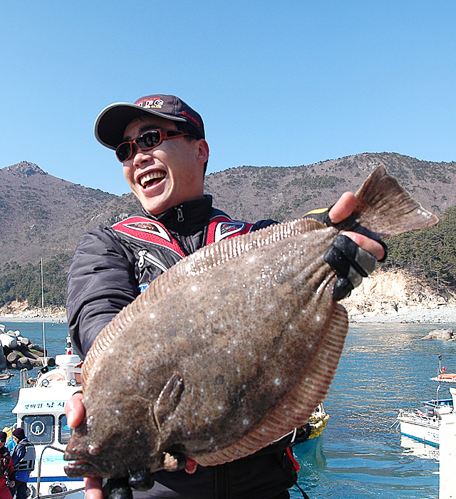 사진은 지난 2008년 2월 17일, 거제 여차에서 낚을 52cm 광어를 들고