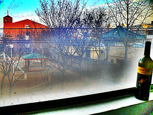 창 밖 놀이터,  헐벗고 메마른 버즘나무 가지엔