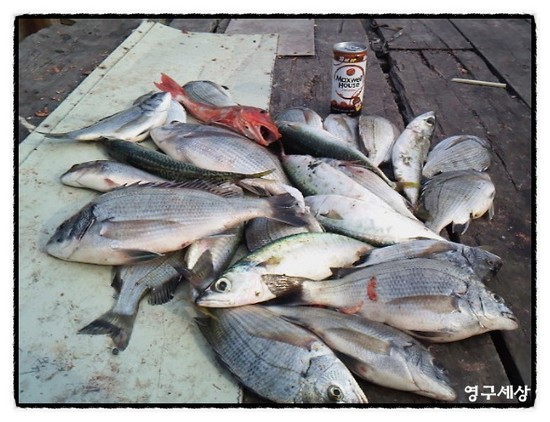똥햄일행을 싣고 공구일행의 전마에 도착한 철수배를 타고 일행모두 포구로 향하는뱃전에서 서로의 조과를 확인할 수있었는데 역시나 똥햄측의 조과가 공구측의 조과보다는 씨알이나 마릿수에서 압도를