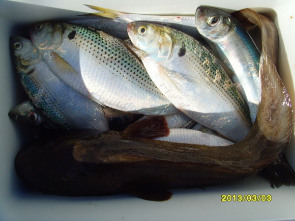 장갱이 장게이 숫넘은 머리가 크고 맛이없으나(사진) 암넘은 머리보다 몸빵이 좋으며 맛이 괜츈합니다 봄 한철이 제철이며 오래전엔 미역국 외엔 쳐다도 안본 괴긴데 요즘 자연산이 귀해서인지 회탕찜 만능임!