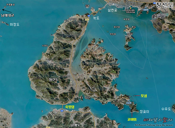 1.창선도 창선대교 밑 '죽방렴 감성돔 배낚시 포인트' 2.창선도 장곶이 '코바위' [어종:감성돔 / 시즌:5~10월 / 진입:도보]3.창선도 '모섬' [어종:볼락,감성돔 / 시즌:3~11월 / 진입:낚시배] ▶메뉴를 클릭하시면 자세한 내용을 보실 수 있습니다.
