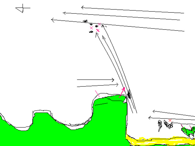 강한 바람에 원줄이 활처럼 휘지만 감시가 물면 줄이 직선으로 펴진후 드랙을 찬다.