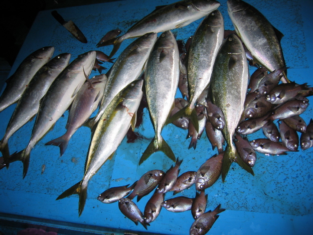 언제나 마찬가지로 배신하지 않은 고마운 방어들 밑밥을 흘리니 200여매다
