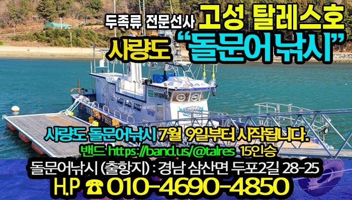 고성출발 사량권역 돌문어 전문출조점 고성 탈레스호입니다.