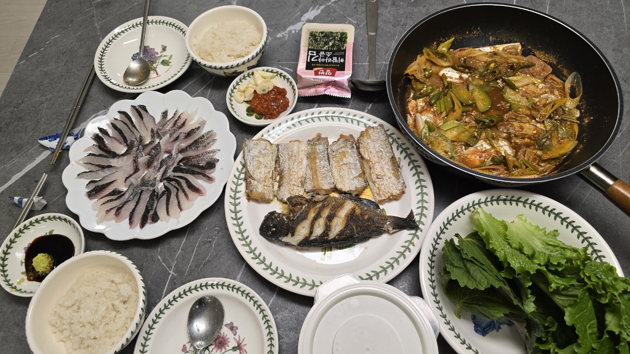 집에 와서 잡은 벵에돔과 갈치로 맛있는 저녁 한끼를 차려 봅니다^^