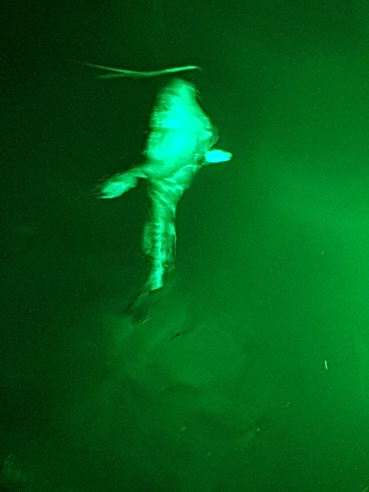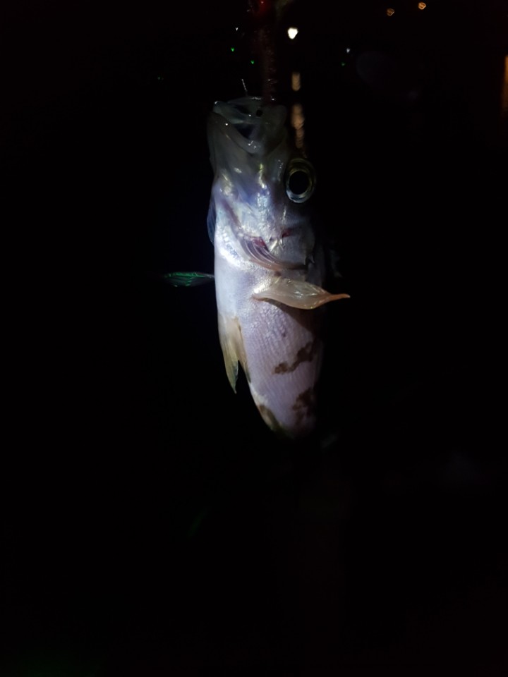 보니 고기 같기도 하고 해서 유심히 보다가 집어등 아래로 들어오니 왠 아귀가 어슬렁