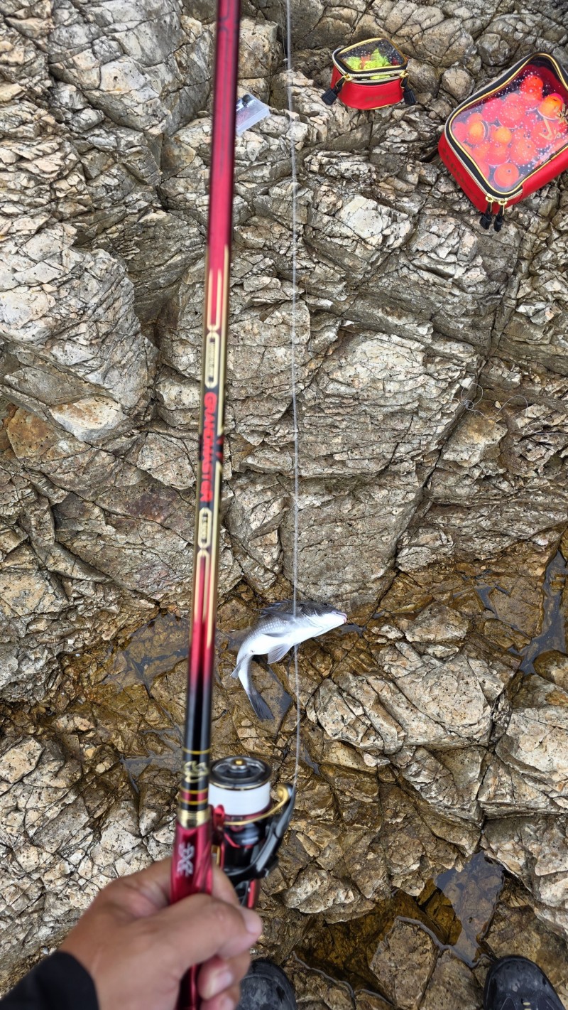 조금 수심을 줄이고 밑밥도 지속적으로 넣었더니 벵에돔까지 입질합니다