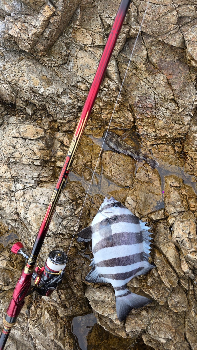 터진건 4짜중반의 돌돔.. 거의 다 올려서 뜰채질하는데 팅~ㅠㅜ