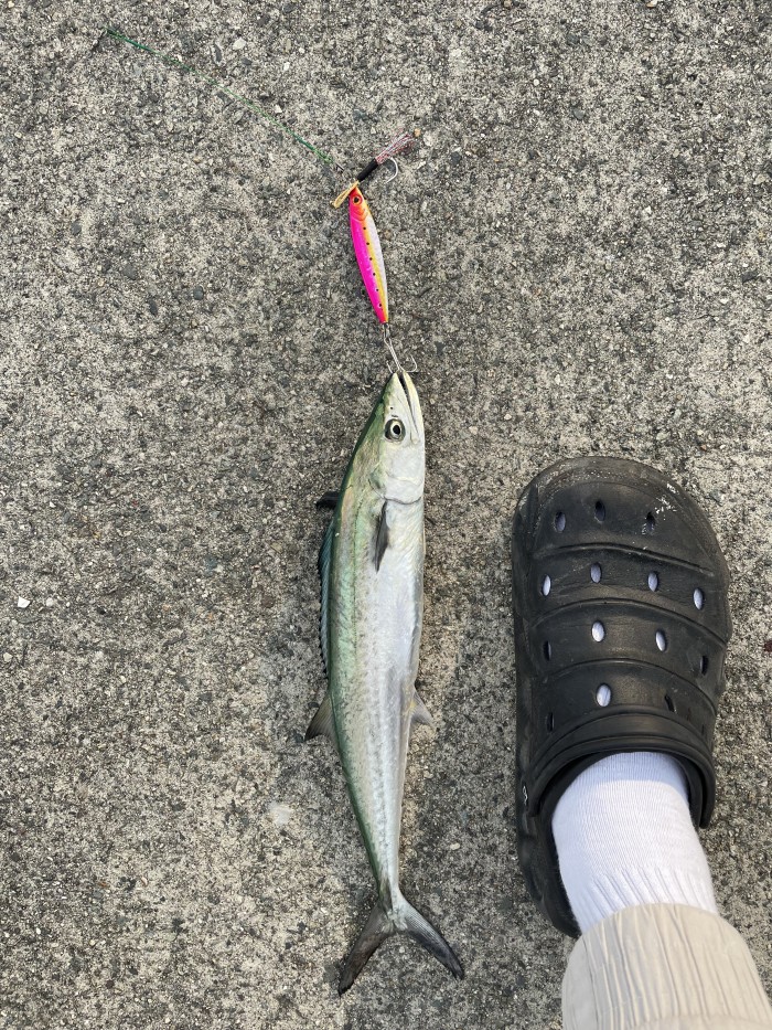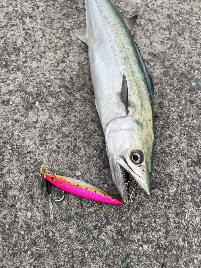 그렇게 방파제끝으로 가는도중에 한분이 메탈로 50급 삼치한마리 걸어냅니다