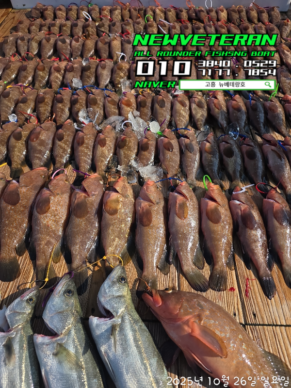 안녕하세요~고흥뉴베테랑호입니다~^^25.10.26먼바다 좋지 않은 기상에 오랜만에 내만권에서 붉바리낚시 진행했습니다~!!!출항전부터 강한 바람에 오늘 낚시 괜찮을까? 했는데!!!!5짜는 아니지만, 최대 47cm!!!4짜초반부터 3짜후반까지 10수이상!! 3짜중반 다수~!!궂은 날씨에 시작했지만 열심히 낚시해주신 조사님들 덕분에 즐겁게 마무리하고 정박까지 힘써주신 조사님들 감사드려요~~!!!!!고생많으셨습니다~!!!!!!귀가는 안전운전~조심히 가세요~~^^
