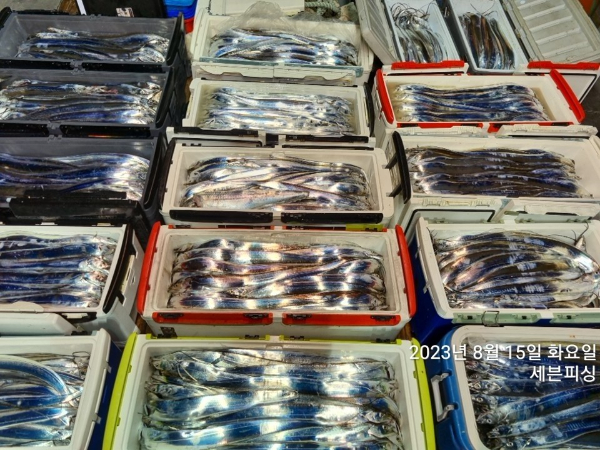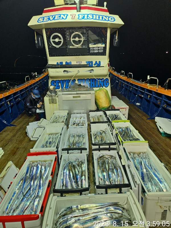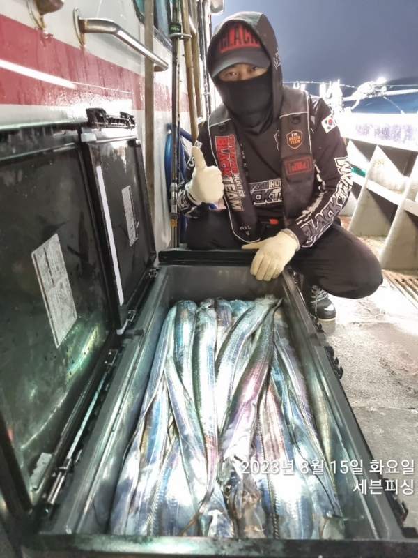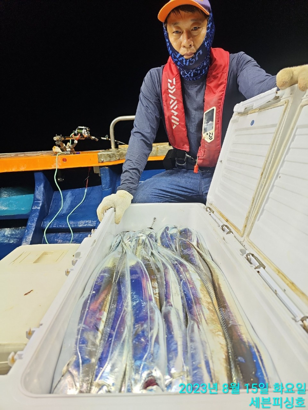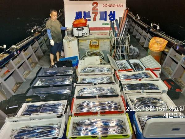 [여수세븐피싱] 8월 15일 입항 먼바다갈치 조황입니다~!! 나흘째 호조황!!! 1호 2호 두척모두 만쿨도장 찍고왔습니다~~~ 수요일 금요일 소수자리여유 010-5664-9231