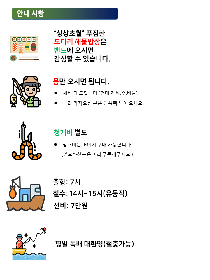 평일은 자리 널널하니 황제낚시하러 오세요!!