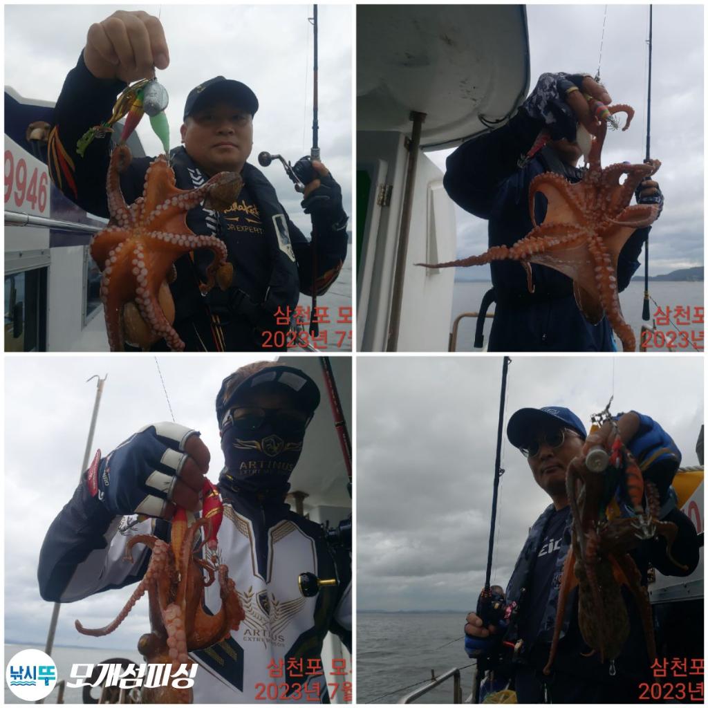 금어기 이후 처음으로 연이틀 햇빛이 쨍쨍한 오늘입니다. 그동안 짙은 해무와 폭우 그리고 떵바람이 애를 먹었습니다. 남강댐 방류의 영향으로 물색은 완전 흙탕물 이었습니다 물론 돌빡이 녀석들도 꽁꽁 숨어버렸고... 하지만 어부님들의 문어단지나 통발에는 씨알 좋은 녀석들이 대량으로 올라 오는 것을 보면 물속에는 많은 개체수들이 웅크리고 있는 듯합니다. 장마가 완전히 끝난 것은 아니지만 오늘 같은 쨍쨍한 날씨가 2~3일만 계속된다면 돌문어의 활성도도 살아나 줄 것이라 예상합니다. 금어기 이후 지금까지 아껴(?)두었던 녀석들 건지러 떠나보입시다. 토요일(22일)부터 열심히 달려가겠습니다. 즐거운 낚시를 위해서 저희 선단(모개섬호, 포세븐호, 금양1&3호, 대물호)에서 《무료승선권 이벤트》를 실시합니다. 그때그때 선장이 제시하는 미션을 제일 잘 수행하신 1분께 드립니다. 위 선단의 어느배에서던 사용가능합니다.