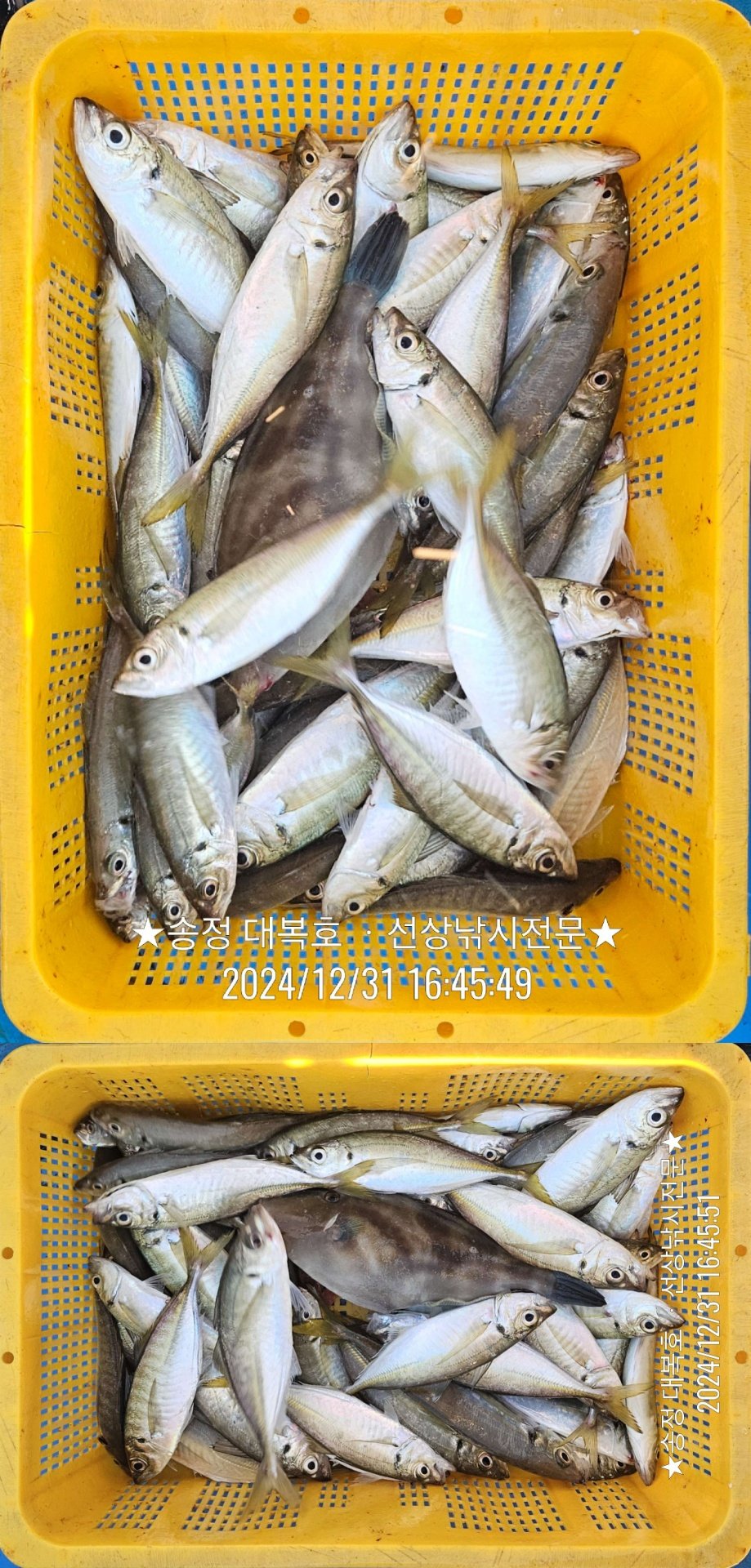 송정 대복호 말쥐치,왕전갱이등 생활낚시 마릿수 조황~~▲ 2024년 12월 31일 송정 대복호 말쥐치,왕전갱이등 호조황