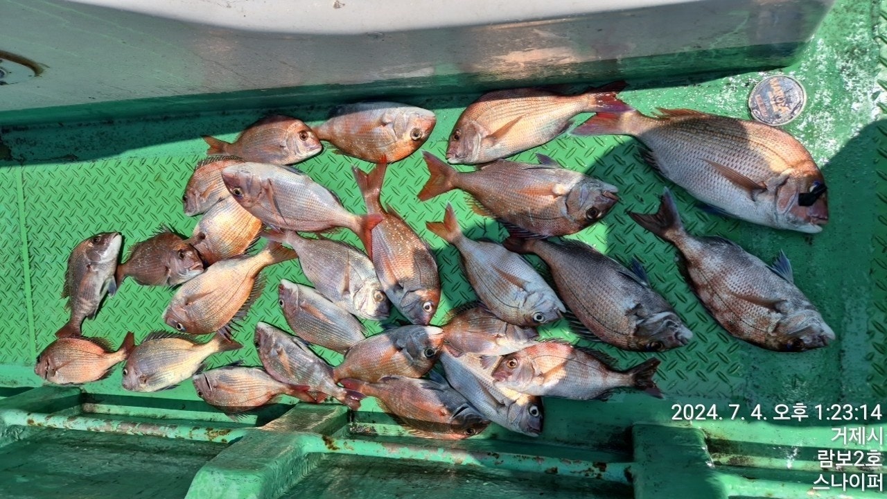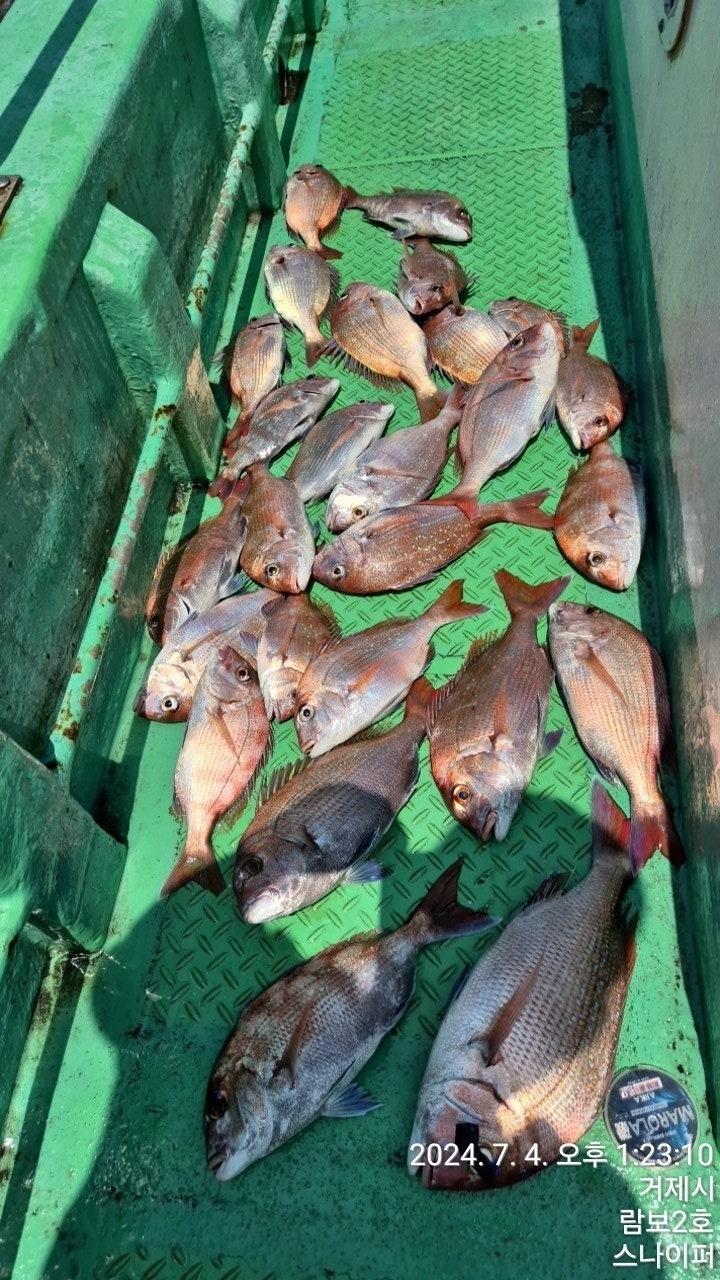 7월 4일(목) 거제 법동출발, 먼바다 본류대 참돔낚시 "람보2호" 조황입니다.