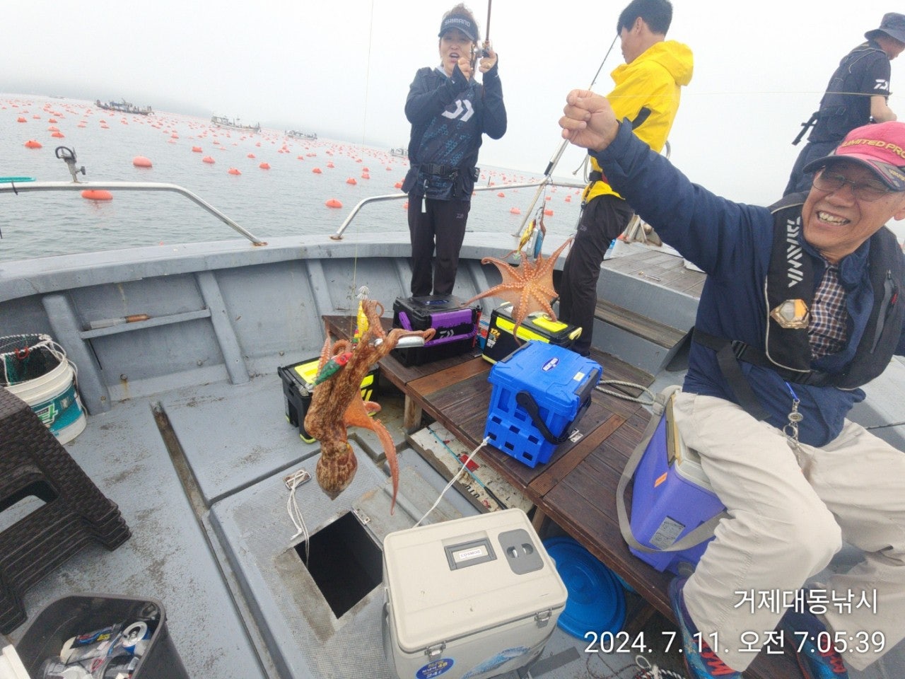 거제 성포출발 대동낚시입니다. 시원한 날씨속에 즐기고 있습니다. 감 좋으신분 벌써 쿨러가..... 이른 아침부터 진입한 양식장포인트에서 빈손으로 지나 갈 일이 없을 정도로 선두, 선미 모두 반응을 하고 있습니다. 굵찍하니 중량감들이 있는지라 들어뽕 신공을 연습하시고 오시길 바랍니다. 즐겨 보겠습니다.