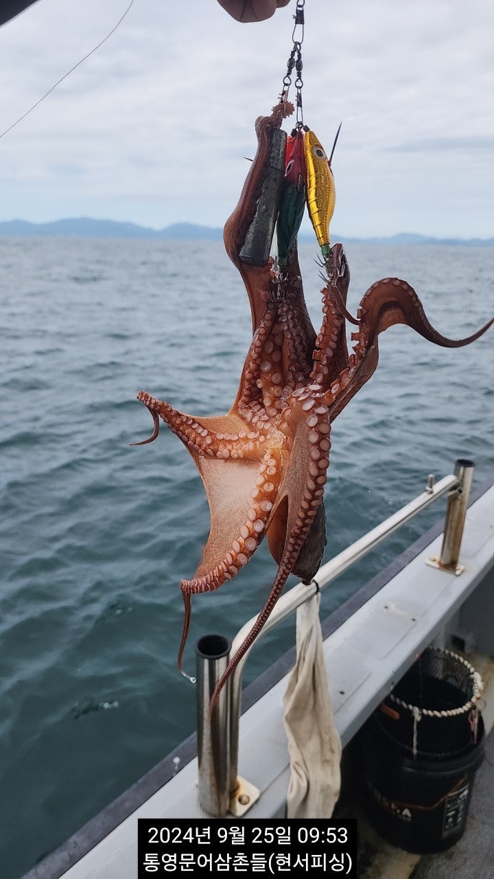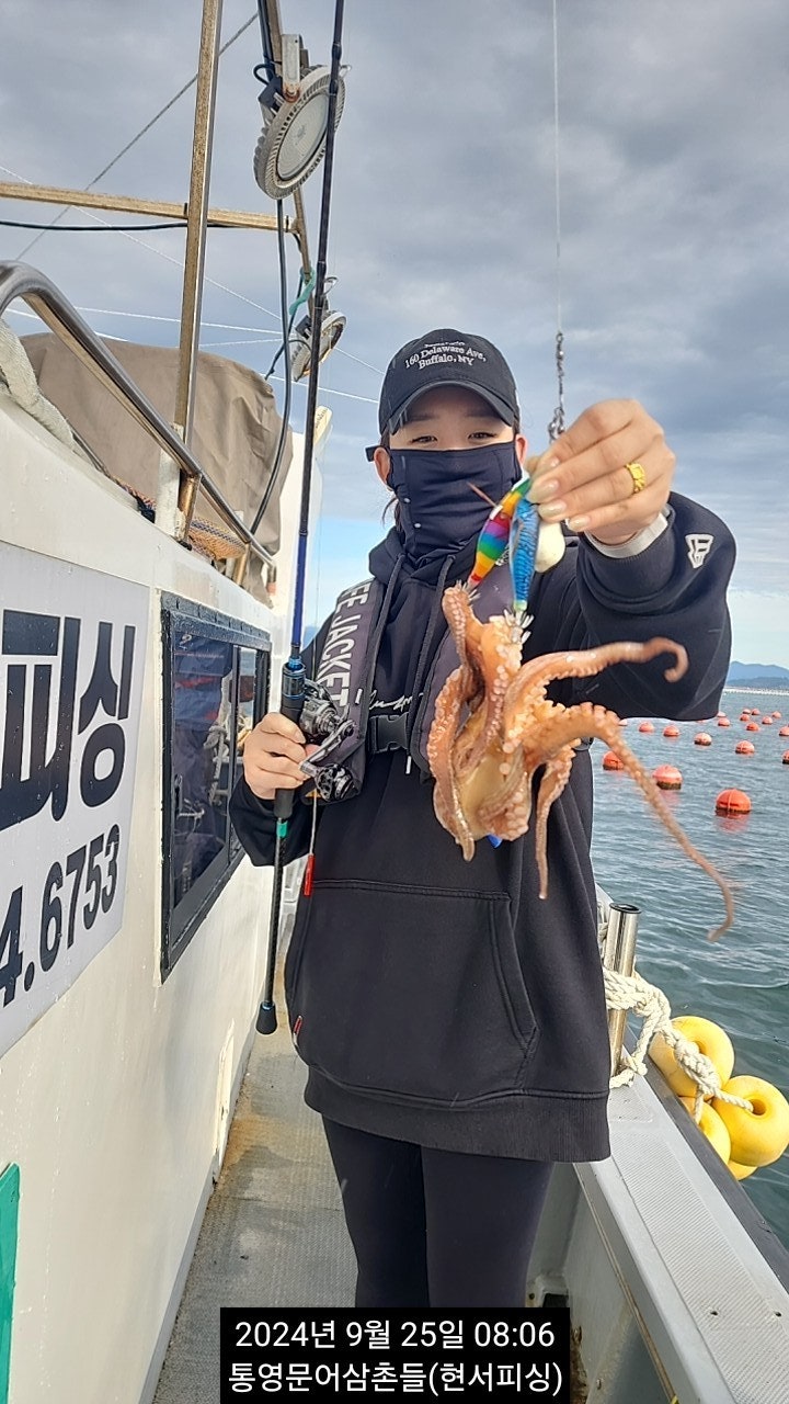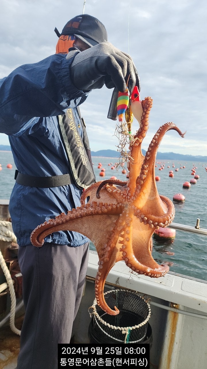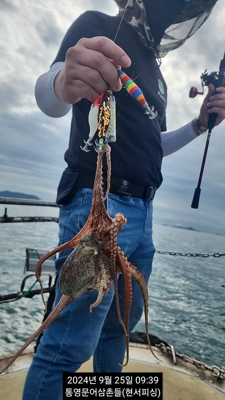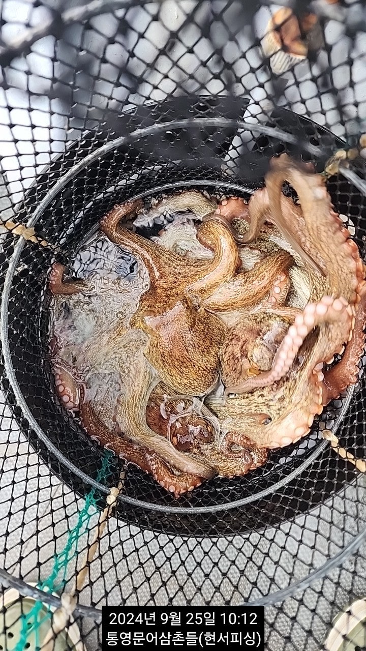 야간시간 출조시간 변경 : 18시 출발 ~ 익일 2시 철수(8만원) 운영됩니다. 통영 두족류 전문출조점 "현서피싱"입니다. 첫포인트 어장에서 따문따문 올라오다, 굵은 씨알들로 대박났던 섬치기낚시에 서 준수한 씨알들이 심심치 않게 올라오고 있습니다. 호핑액션에 바로 반응을 하는 것으로 보면 확실히 기온이 변화되면서 돌문어들의 활성도 또한 좋아 진 것 같습니다. 입질을 폭넓은 지역에서 받을 수 있습니다. 사이즈, 마리수 쭈욱 도전 해 봅니다. 오늘 야간 굵은놈들 뽑으러 진입합니다.
