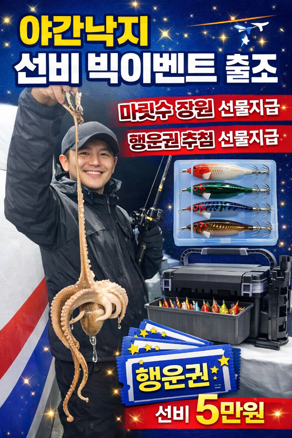 22일(토)주간 삼치방어(08시)여유자리 야간 돌문어(17시)여유자리