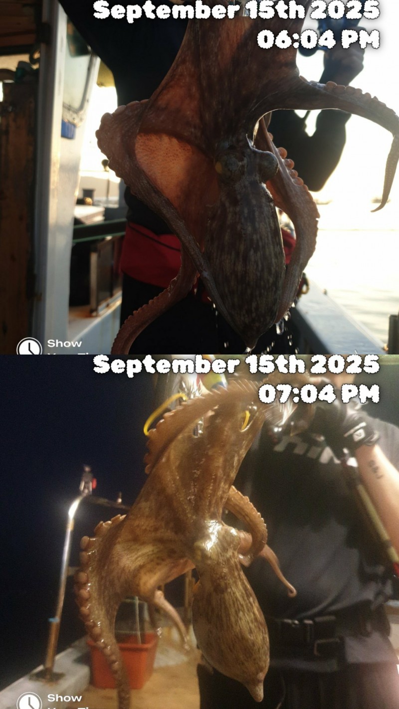9월15일 월요일 야간문어 조황입니다 9분 모시고 다녀왔습니다 날씨도 좋고 물때도 좋고 조황도 좋았네요 ~ 개인23수 20수 18수 17수 등등 전원 두자리이상 하시고 마감했습니다 총130수 이상하고 왔습니다