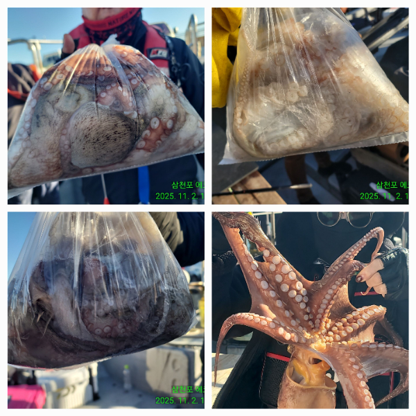 1일(토) 야간문어, 2일(일) 주간문어 조황, 씨알양호 키로급 다수히트~