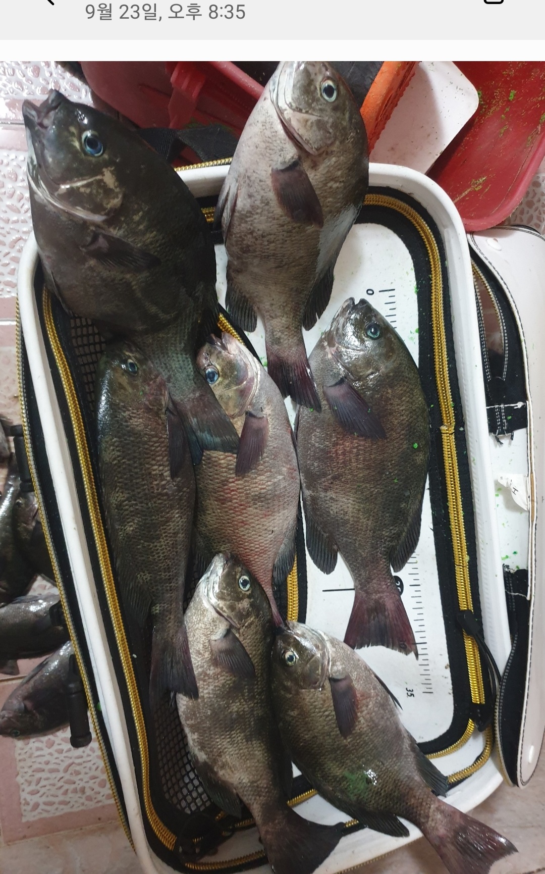어제와 그저께 조황입니다. 너울파도가 한번씩 있는 가운데 대구, 포항, 경주에서 오신 밴드회원께서 32cm급 벵에돔 포함 30cm급 다수와 20 후반급으로