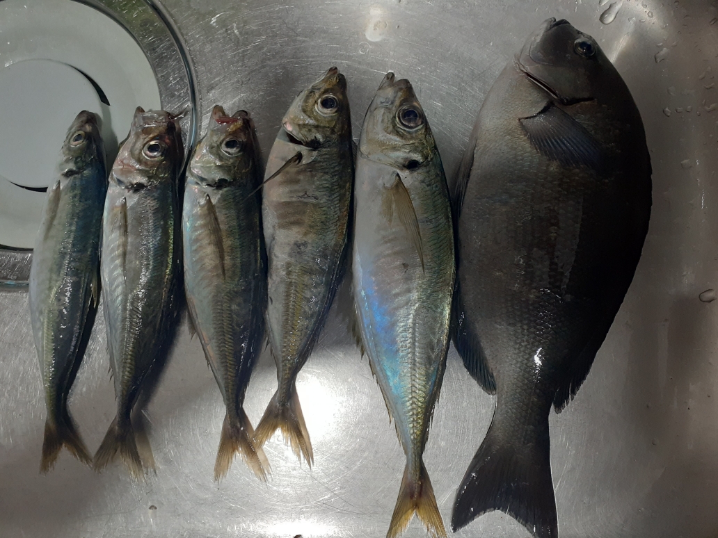 전갱이는 참한 씨알들이 올라오며 이따금씩 대전갱이도  나오는데 낱마리 수준이네요.