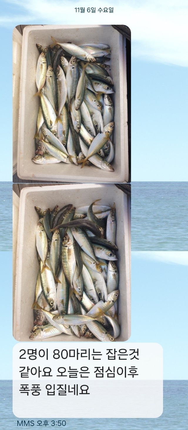 11월 6일 수요일 주간 각2인 고등어 전갱이 조황2024년 11월 6일 수요일 주간