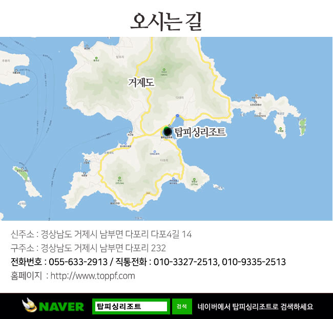 거제시 남부면 다포4길 14 탑피싱리조트(보물섬 식당)