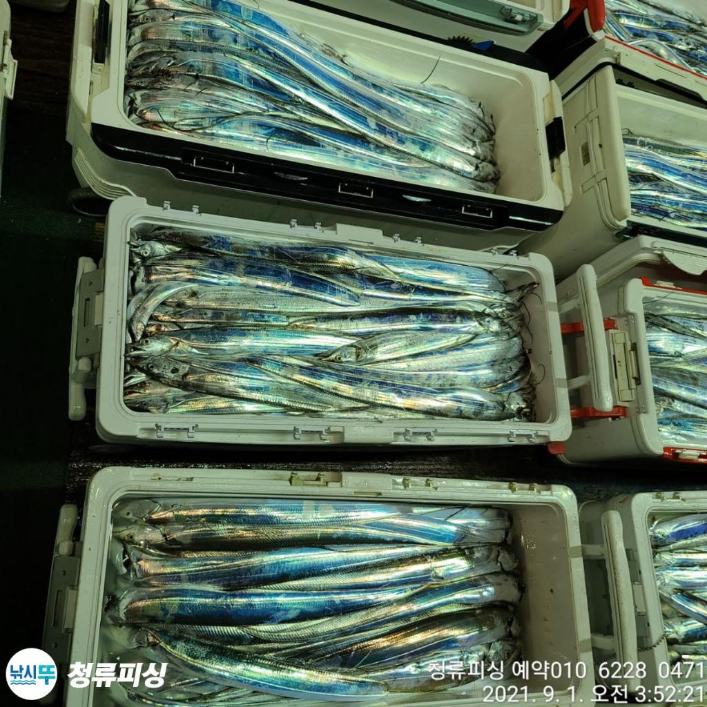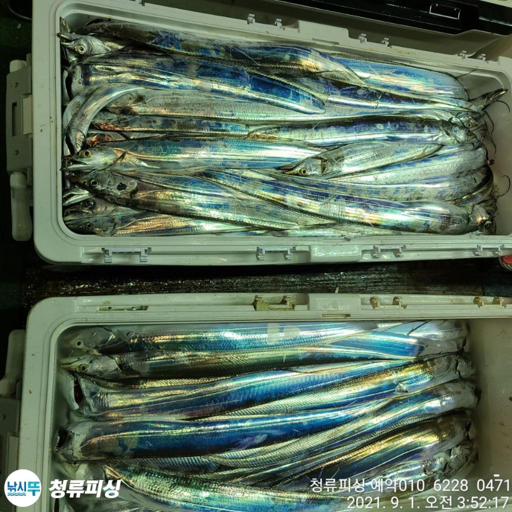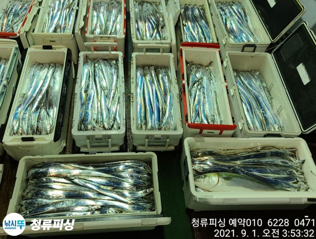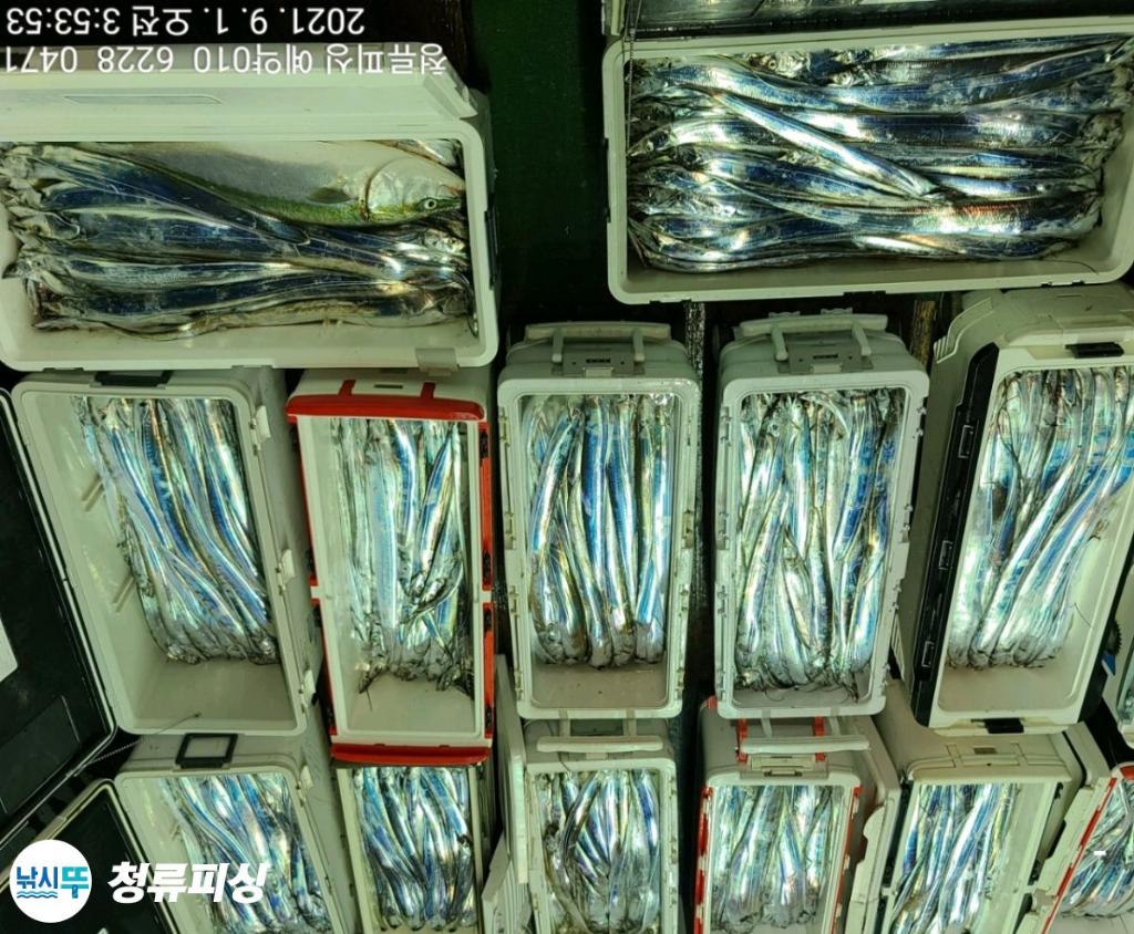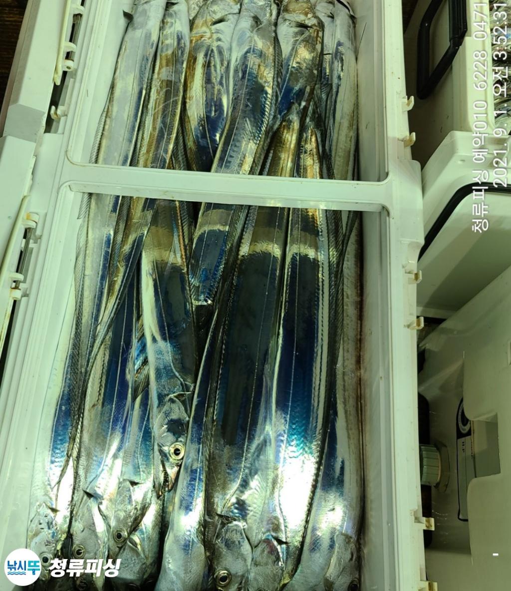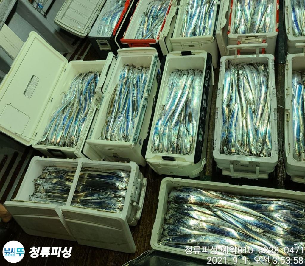 먼바다 기상악화 전 출항 조황입니다 한치가 풍년이더니 갈치도 풍년이네요.^^ 얼음 녹이며 만쿨 또는 쿨러 조황입니다. 날씨만 좋으면 호조황이 계속될 것 같습니다. 내일 출항합니다~^^ 자리 여유~ 예약 010 6228 0471 | |||||||||||||||||||