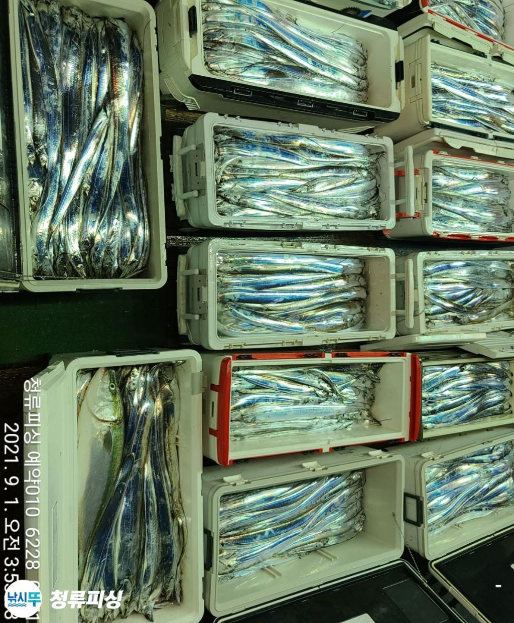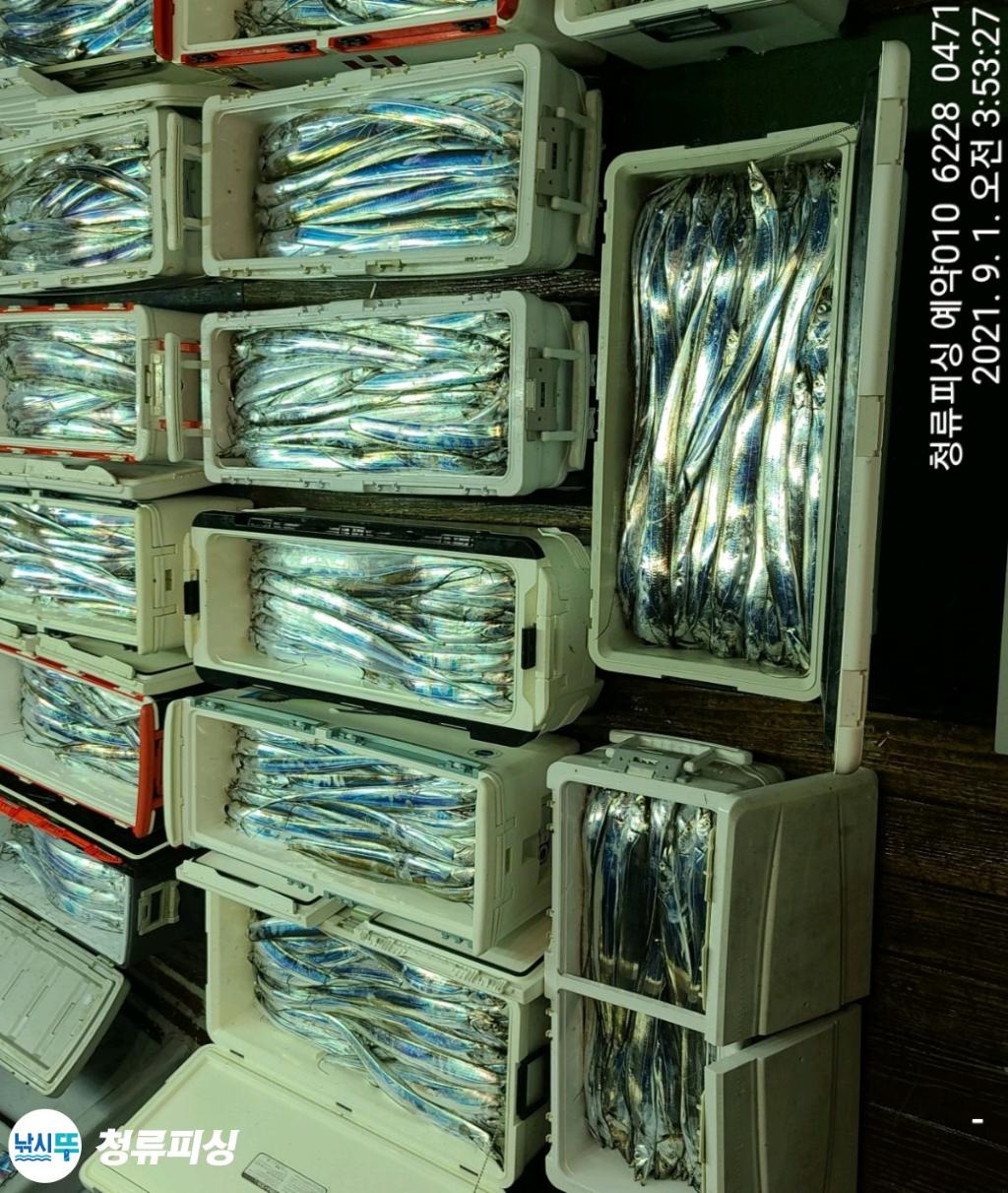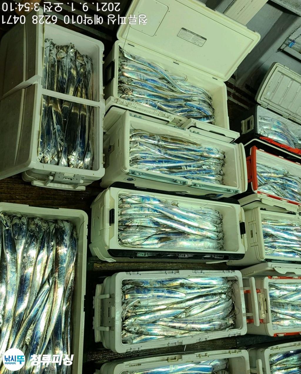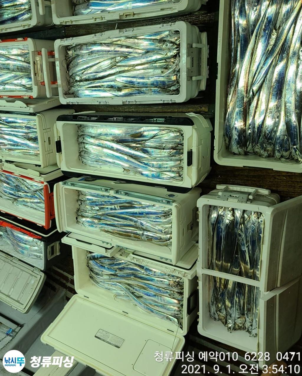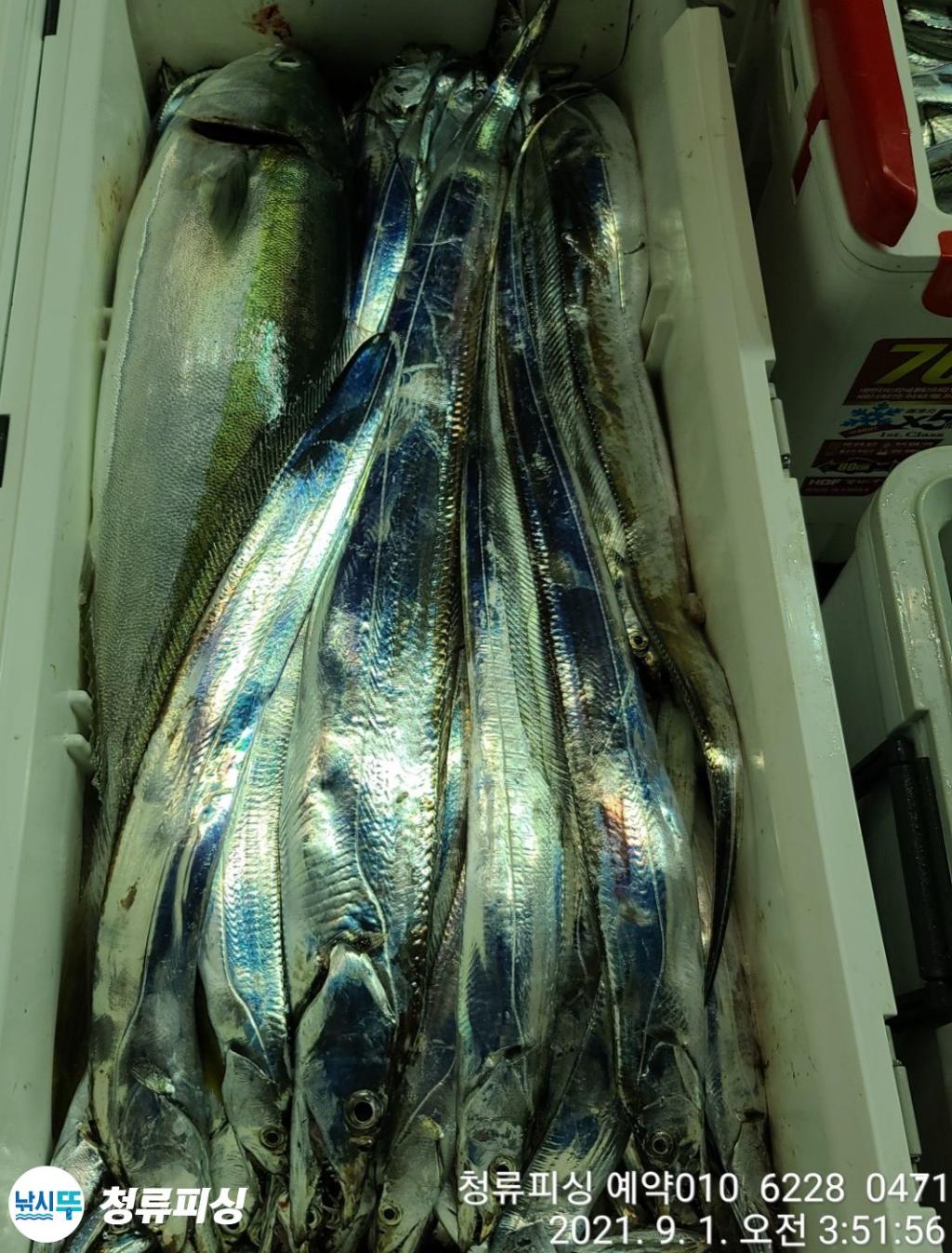 먼바다 기상악화 전 출항 조황입니다 한치가 풍년이더니 갈치도 풍년이네요.^^ 얼음 녹이며 만쿨 또는 쿨러 조황입니다. 날씨만 좋으면 호조황이 계속될 것 같습니다. 내일 출항합니다~^^ 자리 여유~ 예약 010 6228 0471 | |||||||||||||||||||