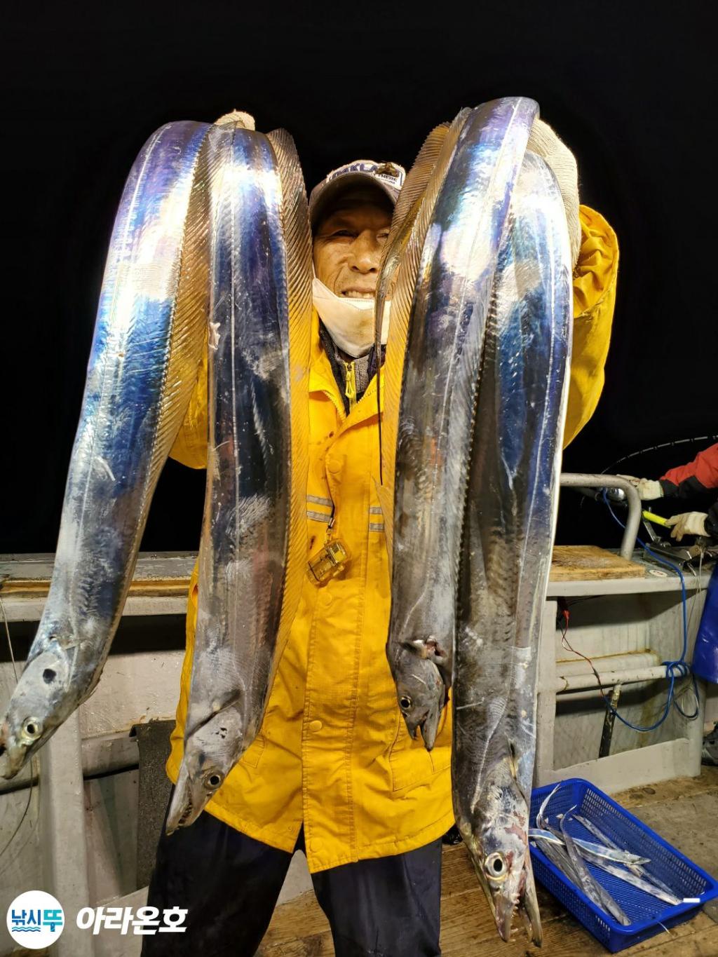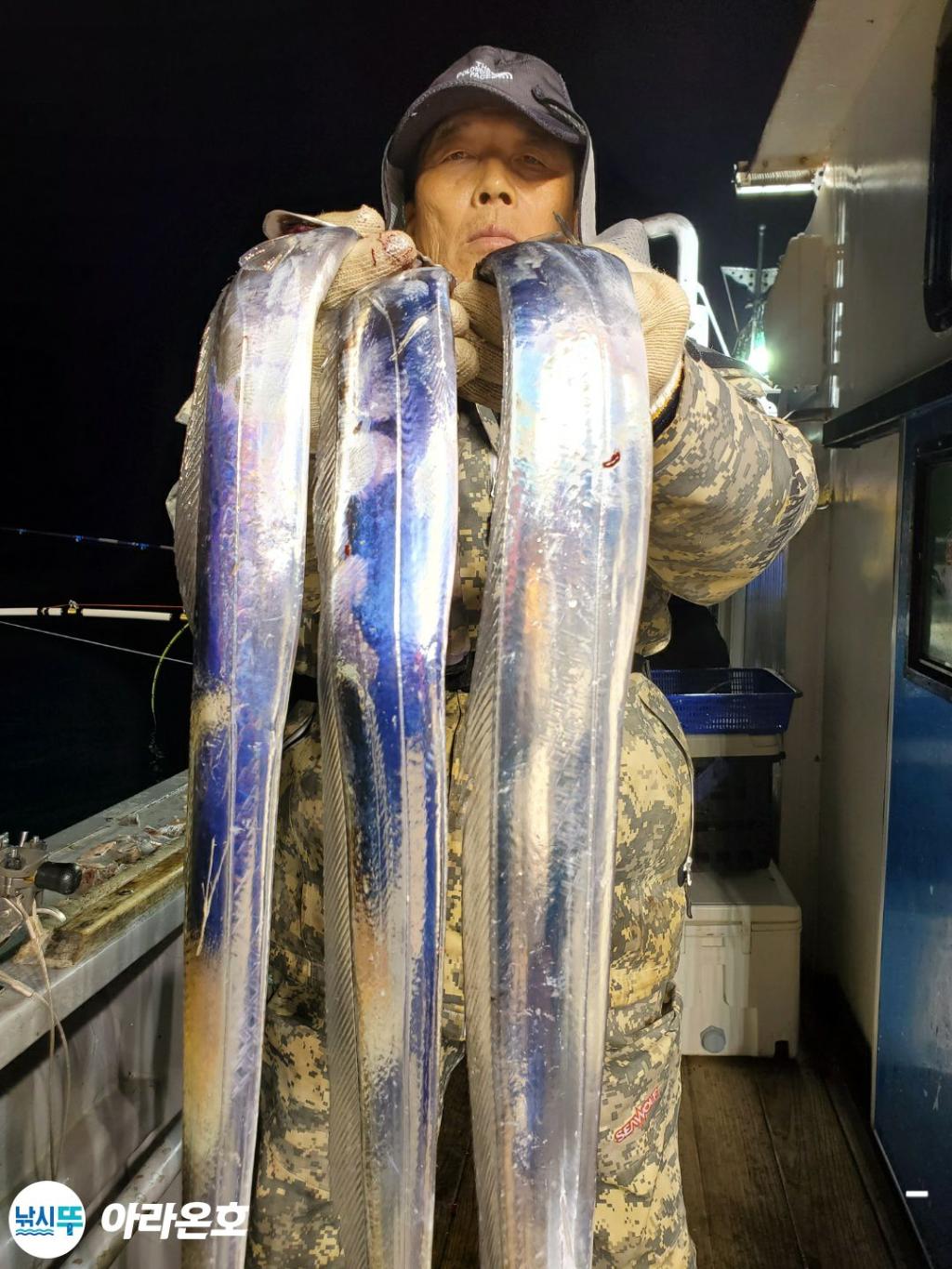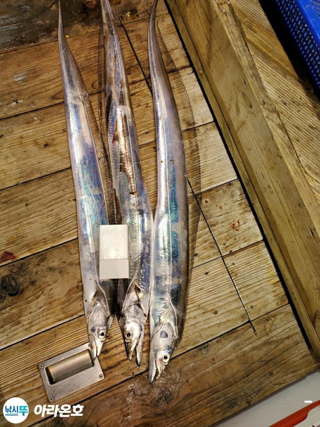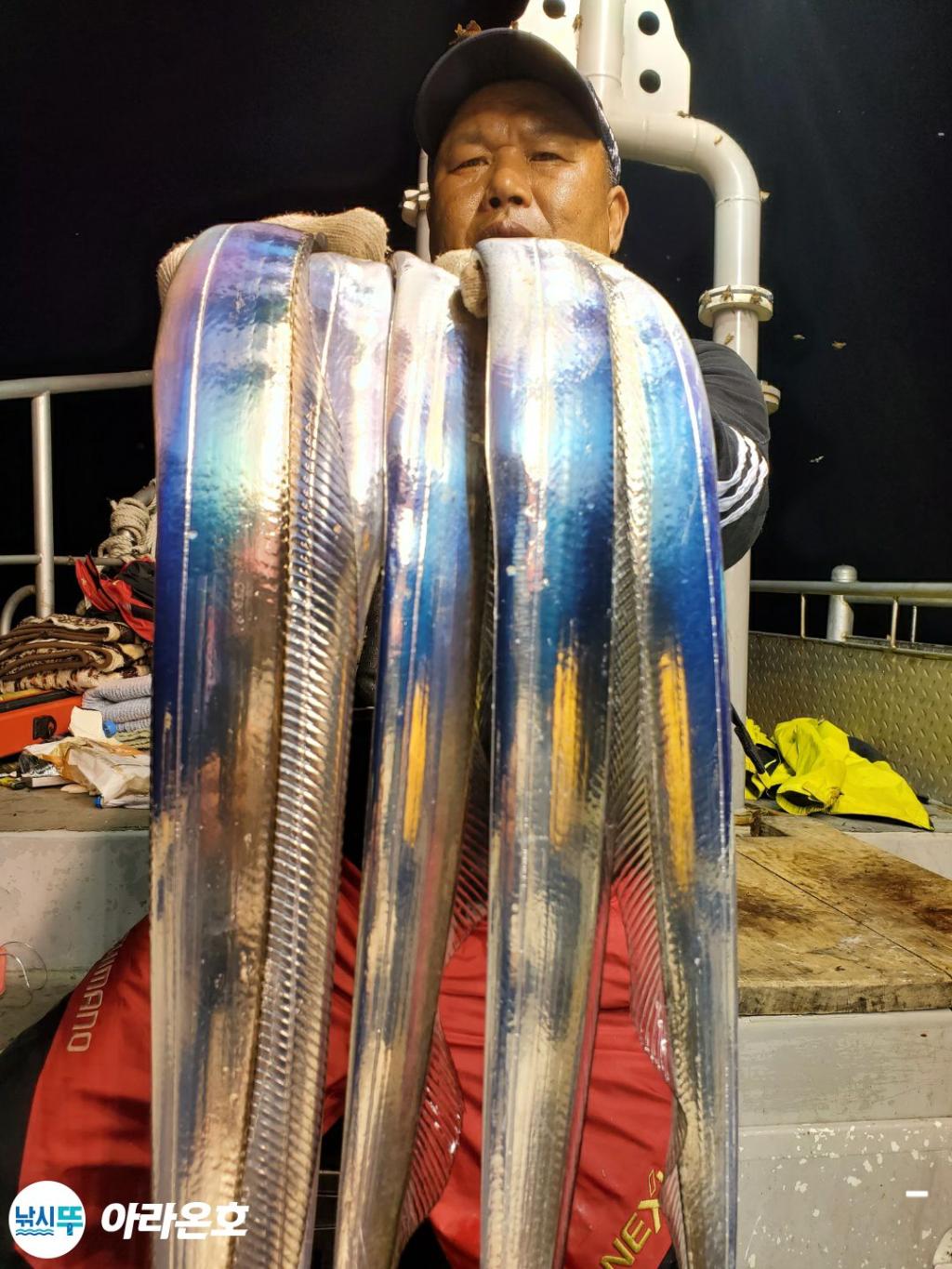 10월21일 진도권 먼바다 대갈치파티~!! 오늘도 전원쿨러조황. 초반부터 갈치파티시작하는바람에 쿨러에 물부터 때려넣고 얼음녹여가며 밤새 얼음없는쿨러에 갈치들 때려붓고 갈치 다리미질해서 한가득씩 담아왔습니다. 아라온피싱에 가을갈치이야기는 계속 대박입니다. 이틀 기상불량으로 선박재정비 개인정비를 맞추고 출항예정입니다.