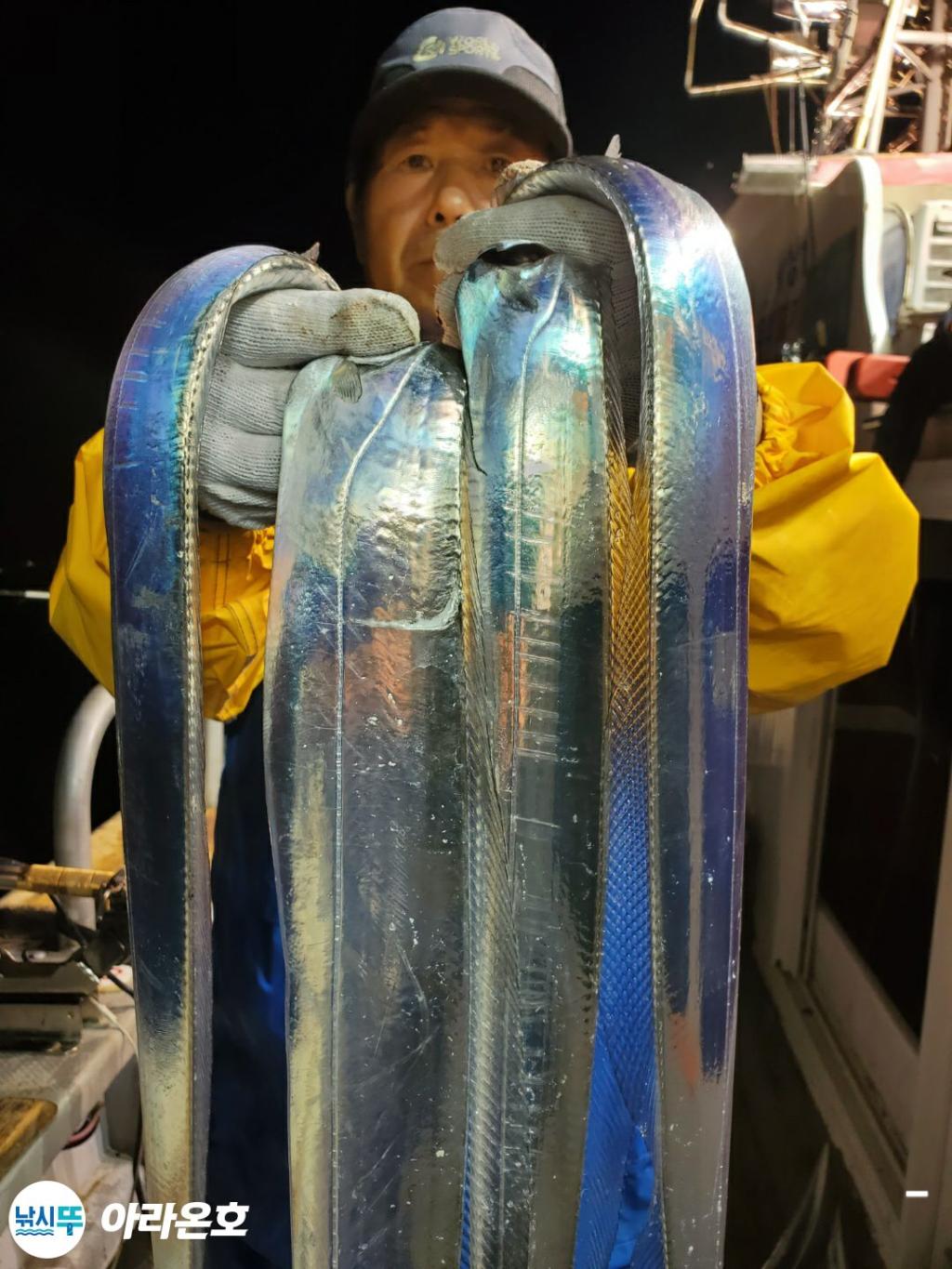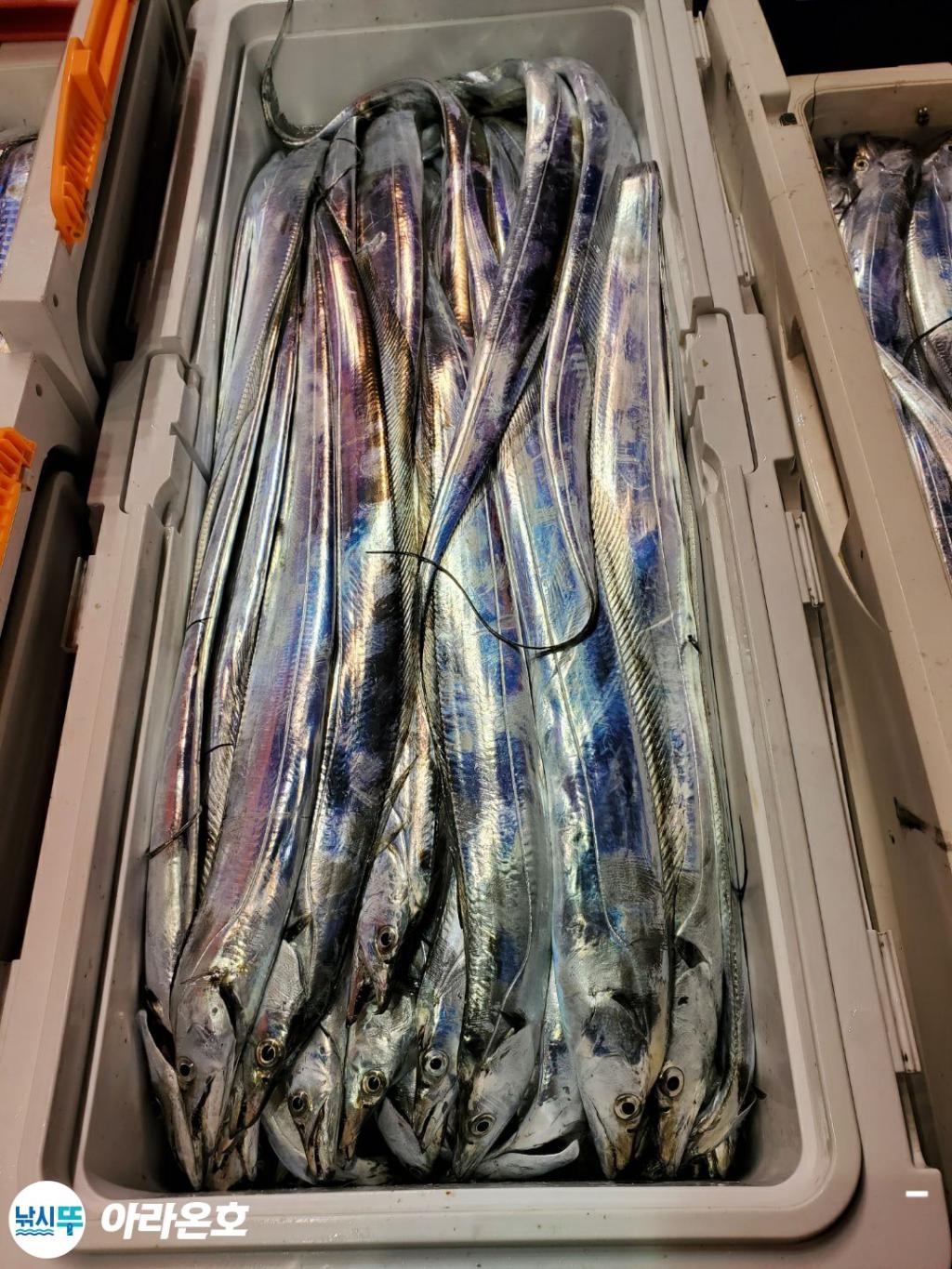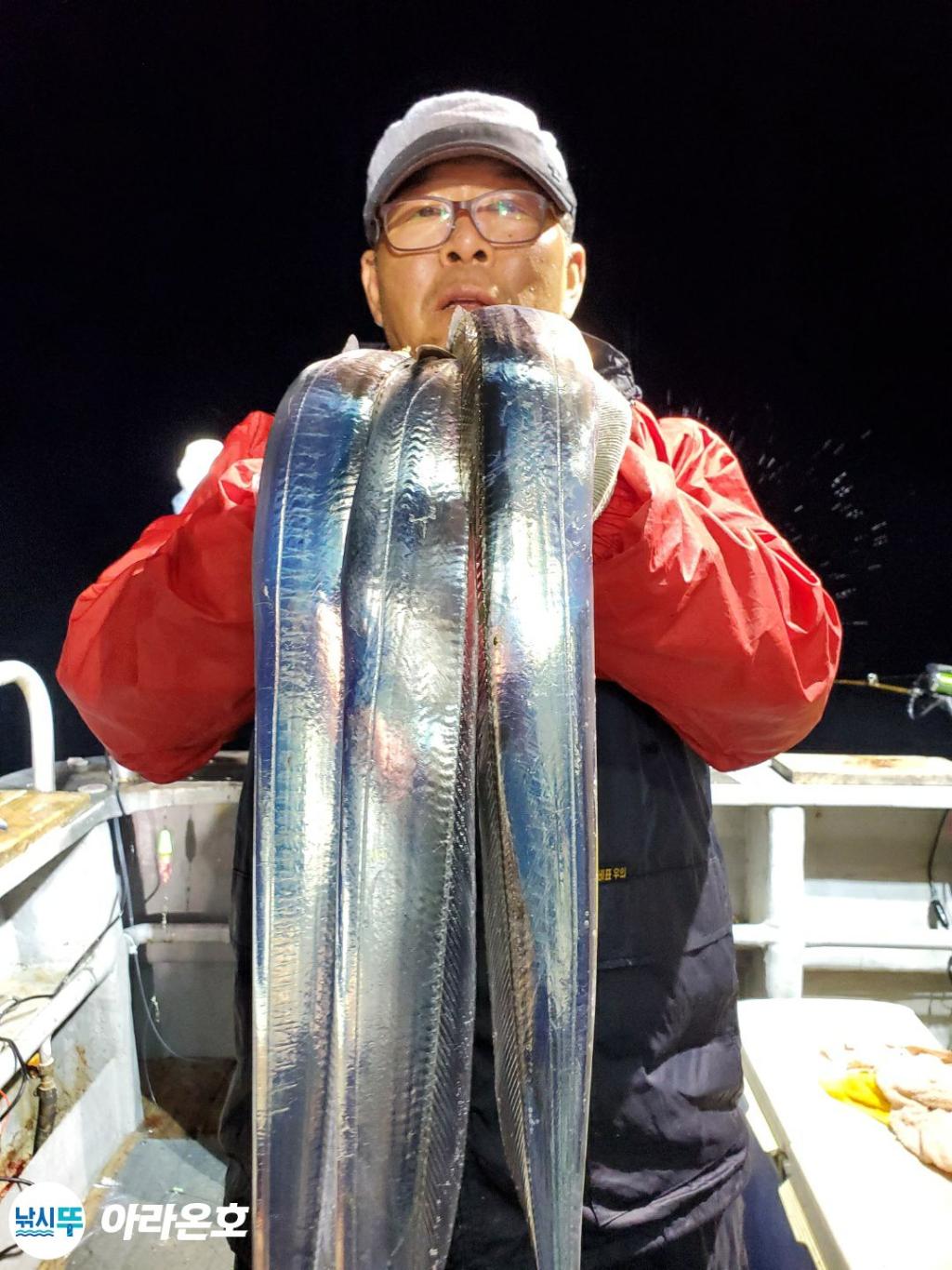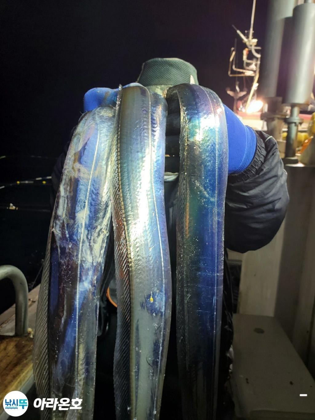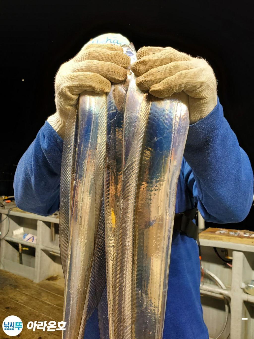 10월21일 진도권 먼바다 대갈치파티~!! 오늘도 전원쿨러조황. 초반부터 갈치파티시작하는바람에 쿨러에 물부터 때려넣고 얼음녹여가며 밤새 얼음없는쿨러에 갈치들 때려붓고 갈치 다리미질해서 한가득씩 담아왔습니다. 아라온피싱에 가을갈치이야기는 계속 대박입니다. 이틀 기상불량으로 선박재정비 개인정비를 맞추고 출항예정입니다.