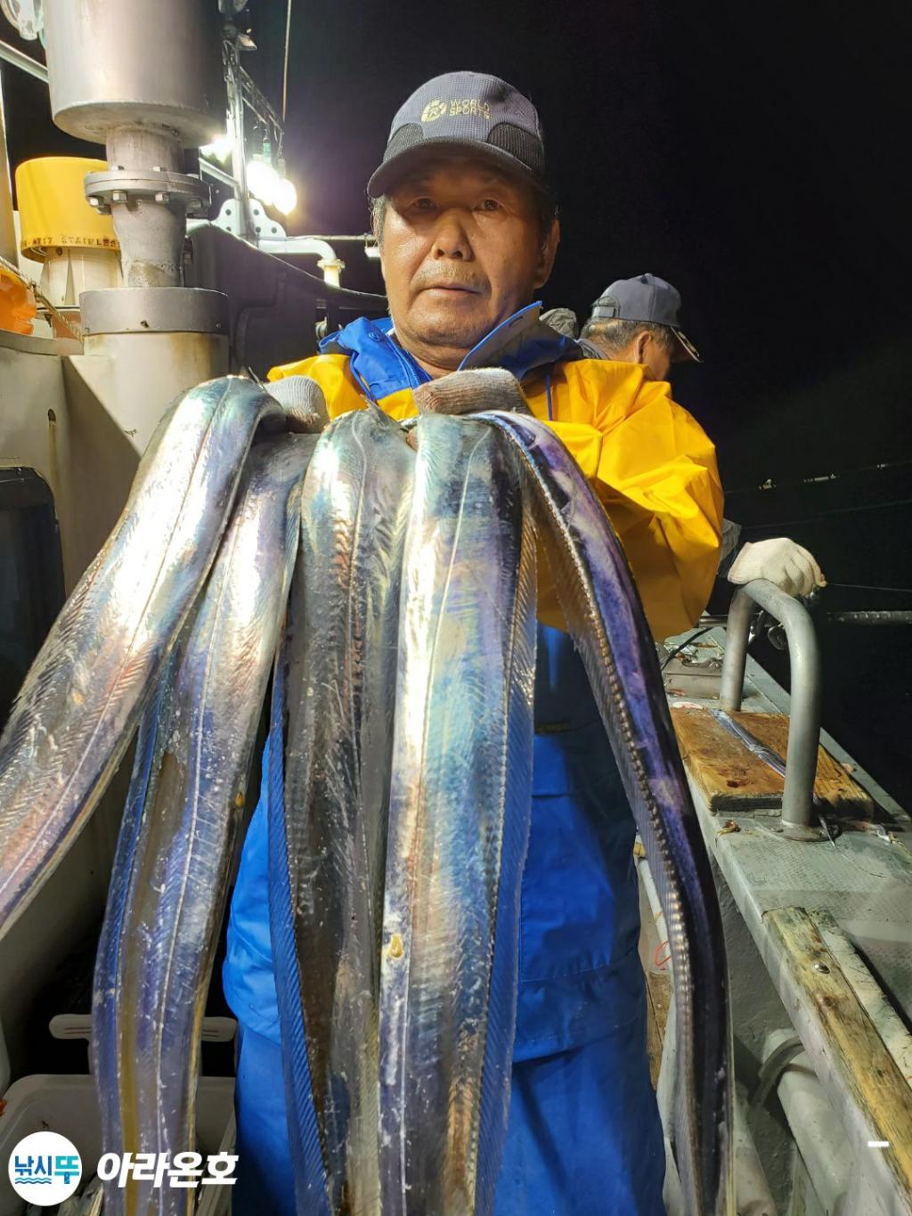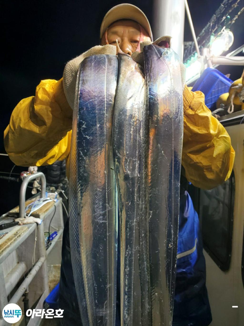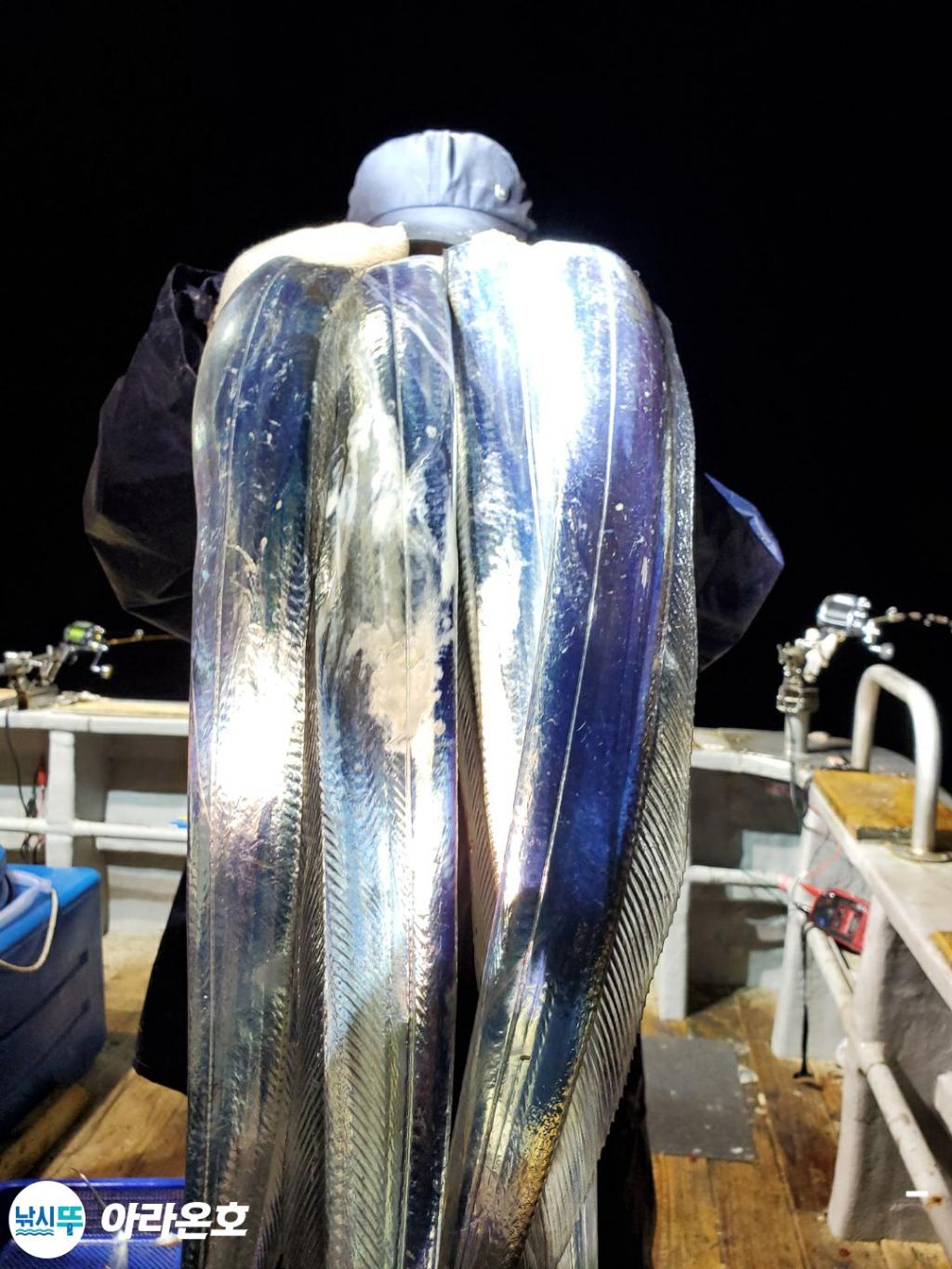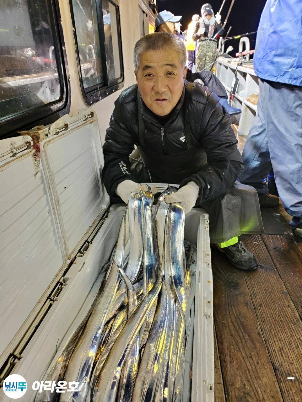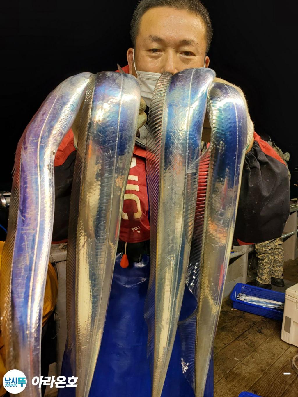 10월21일 진도권 먼바다 대갈치파티~!! 오늘도 전원쿨러조황. 초반부터 갈치파티시작하는바람에 쿨러에 물부터 때려넣고 얼음녹여가며 밤새 얼음없는쿨러에 갈치들 때려붓고 갈치 다리미질해서 한가득씩 담아왔습니다. 아라온피싱에 가을갈치이야기는 계속 대박입니다. 이틀 기상불량으로 선박재정비 개인정비를 맞추고 출항예정입니다.