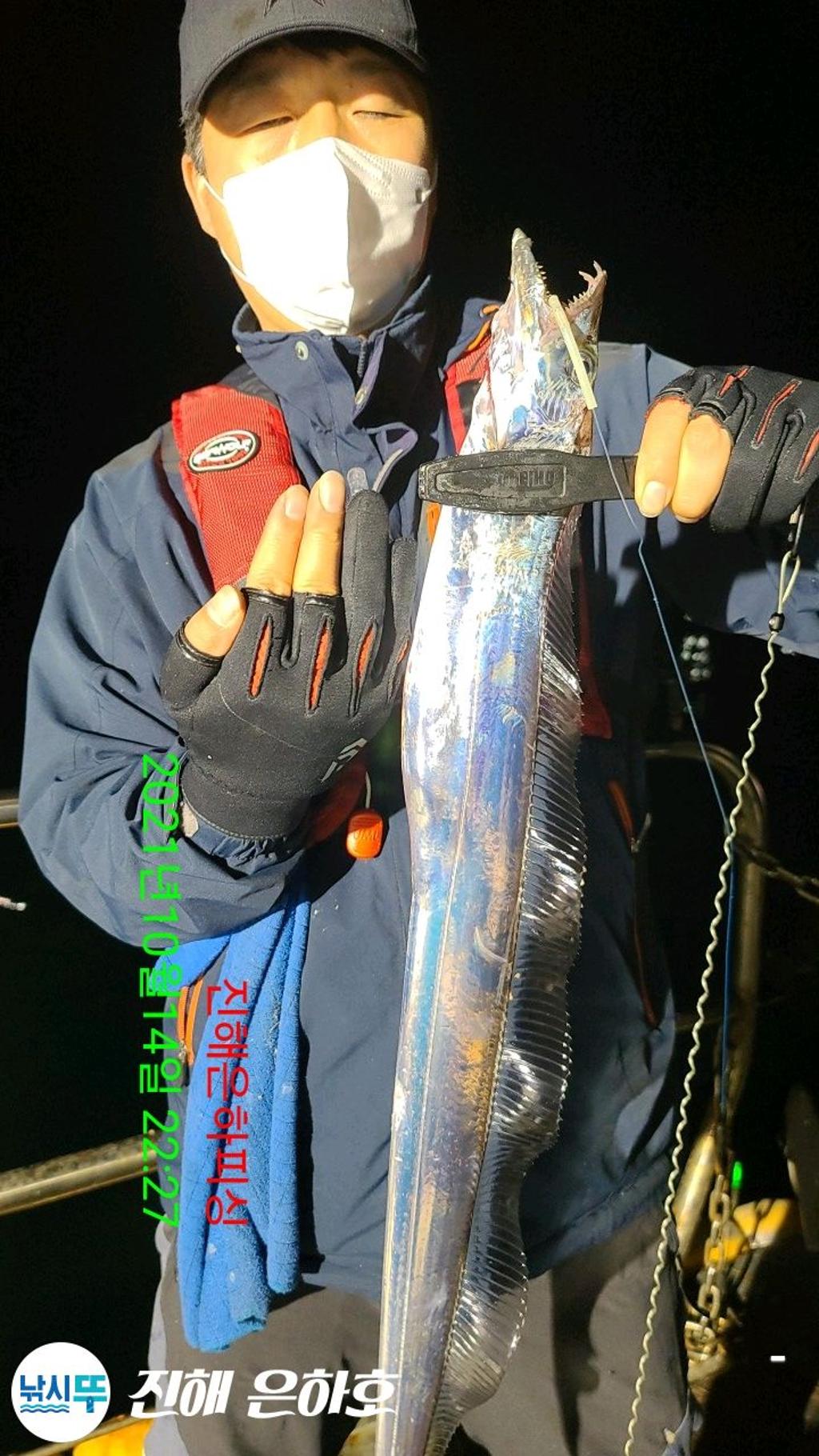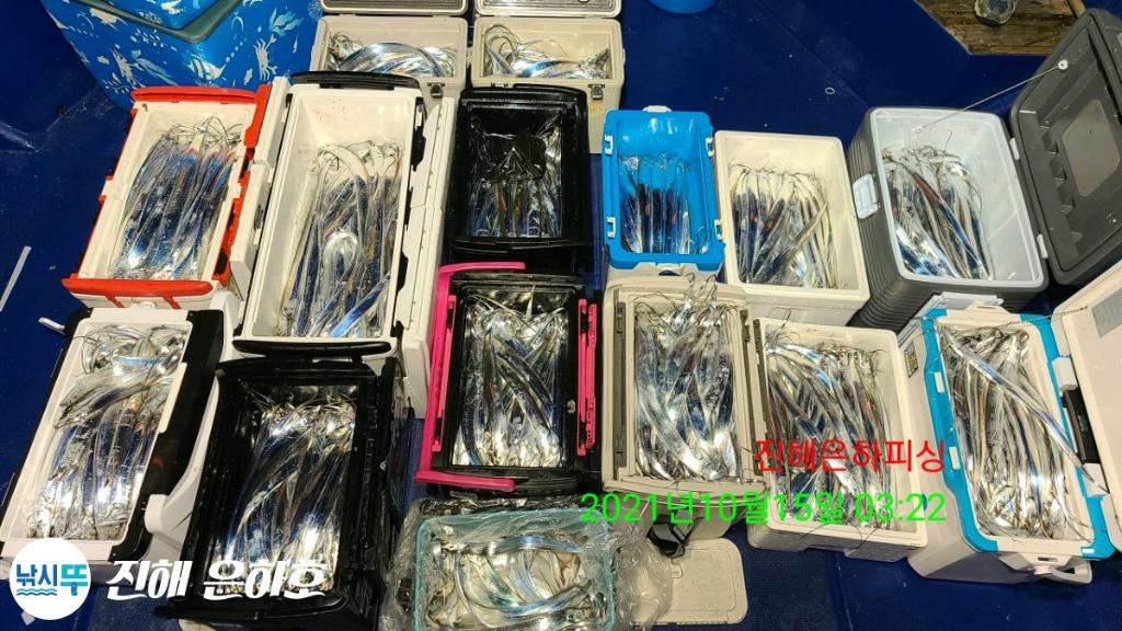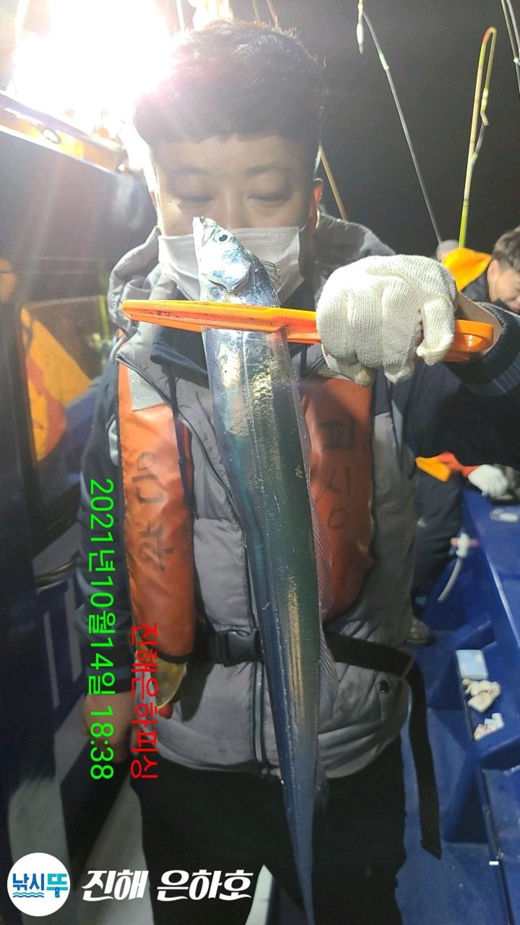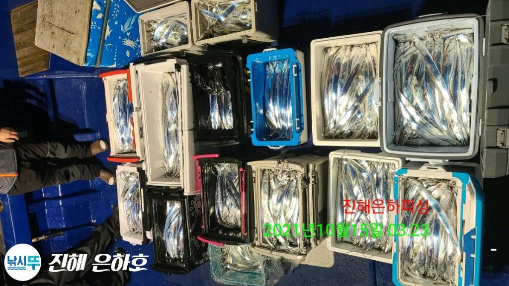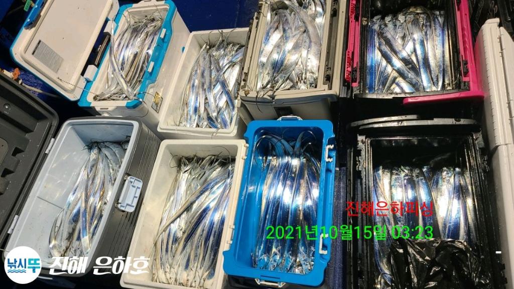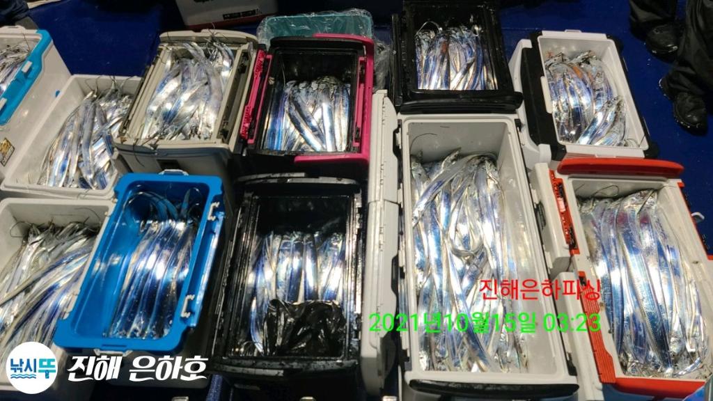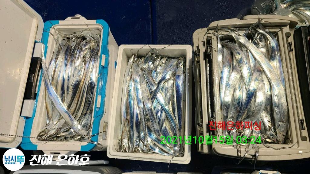 진해은하호 감사합니다 문의 예약문의 010-2209-1844 선 장 010-2209-1800 초보자 환영 잡을때 까지 가이드 합니다 전용 낚시대 2000번릴 세트 대여(1만) 몸만 오셔도 됩니다 깨끗하고 최신시설 완비 선장.사무장이 항시 성실히 가이드 해드리겠습니다 컵라면.커피.음료 식사 제공해드립니다 식사는 개인식으로 나갑니다 ● 내만갈치 출조● 선비6만