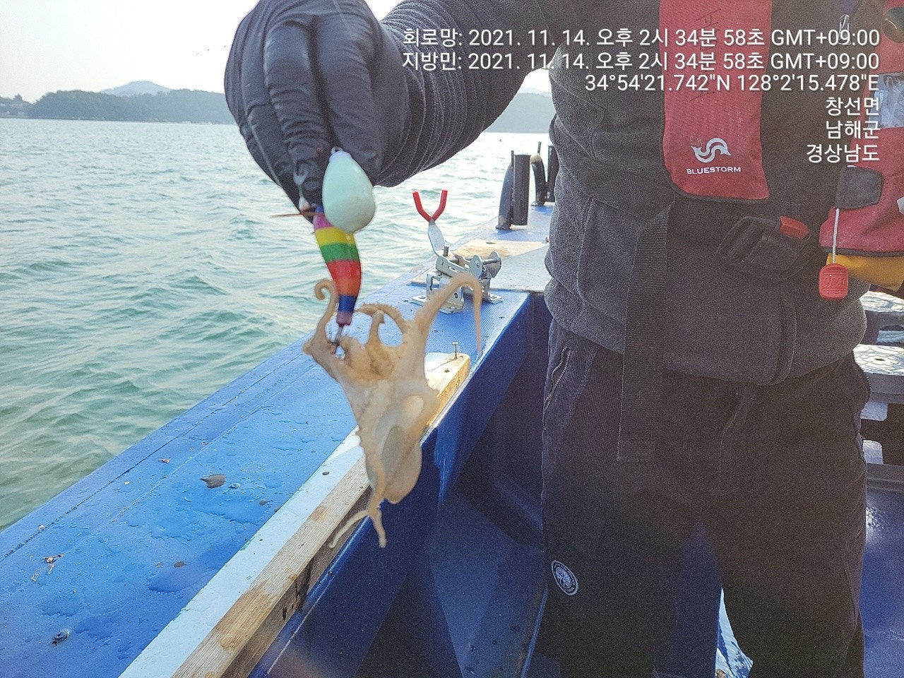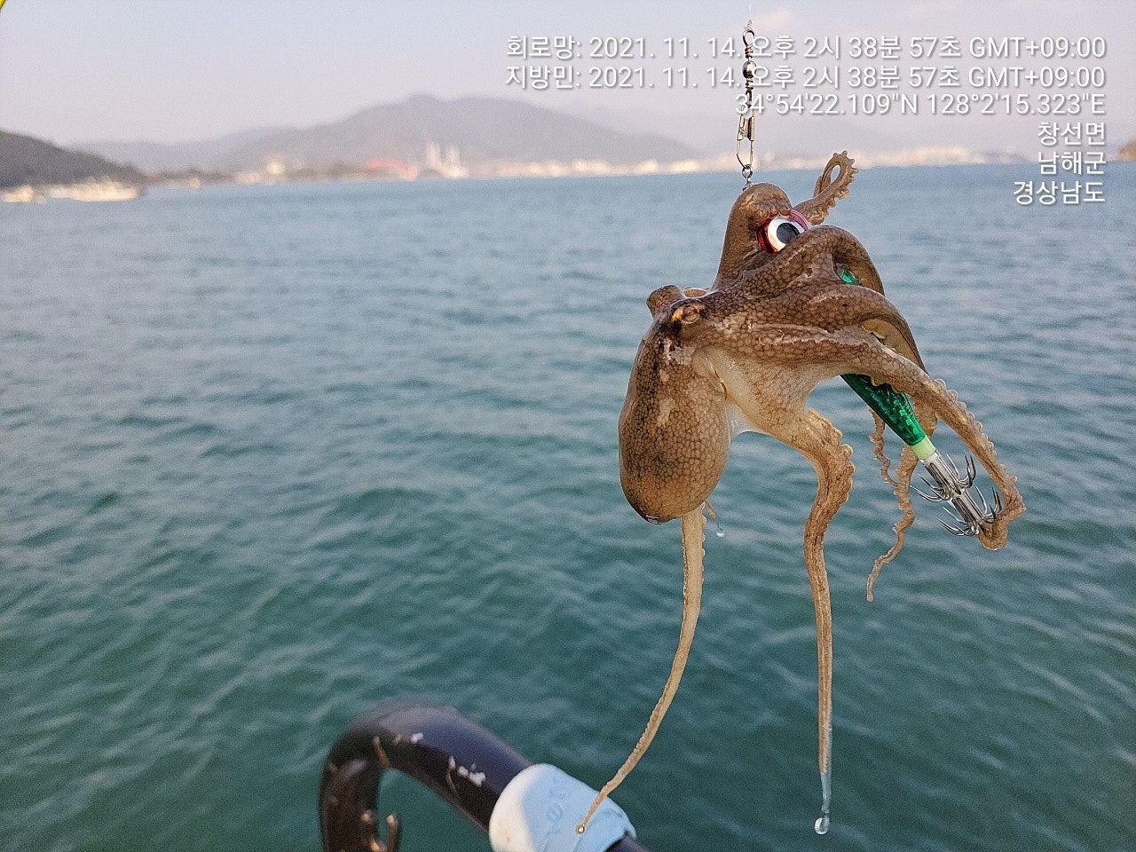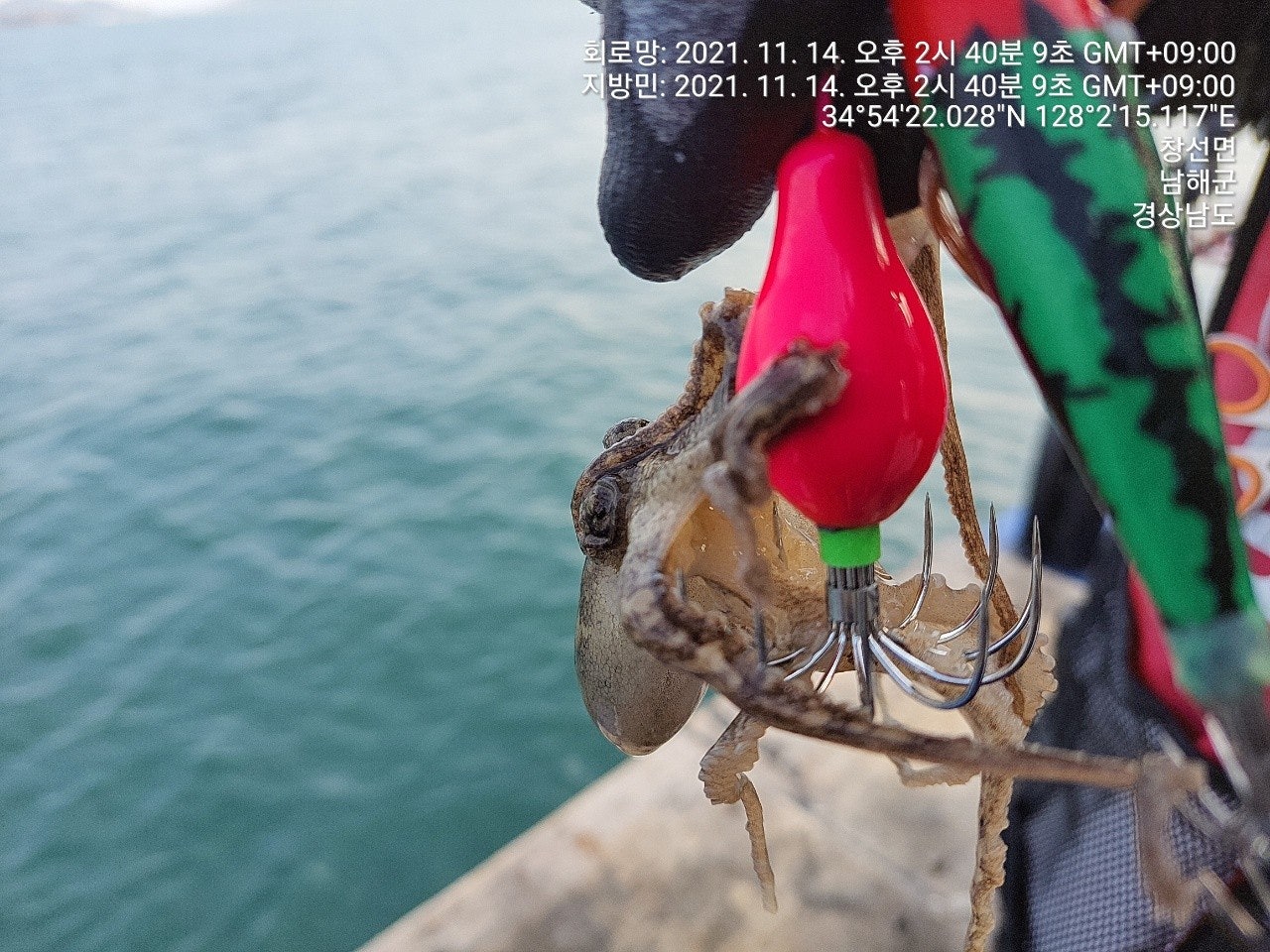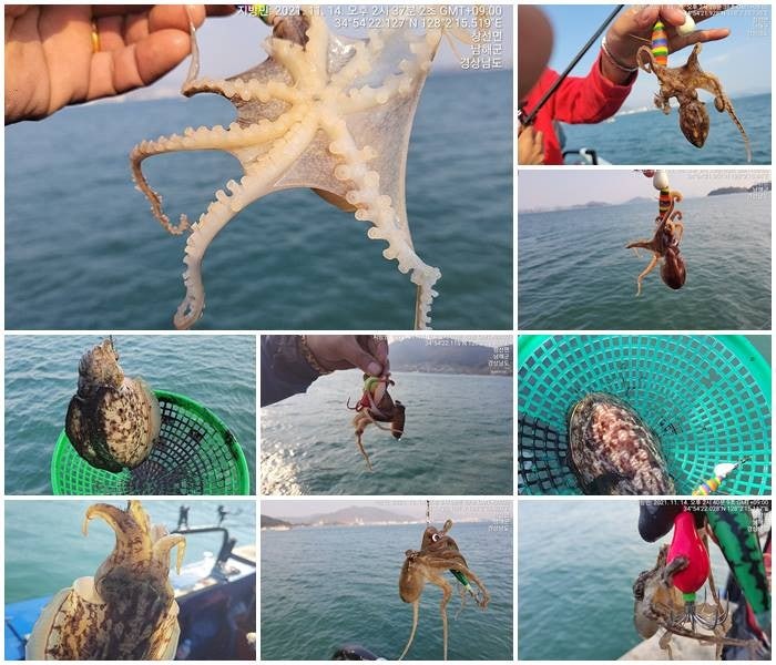 징어만 입질이 들어 오는 장면과 덤으로 씨알 굵은 돌문어까지 나왔었던 재