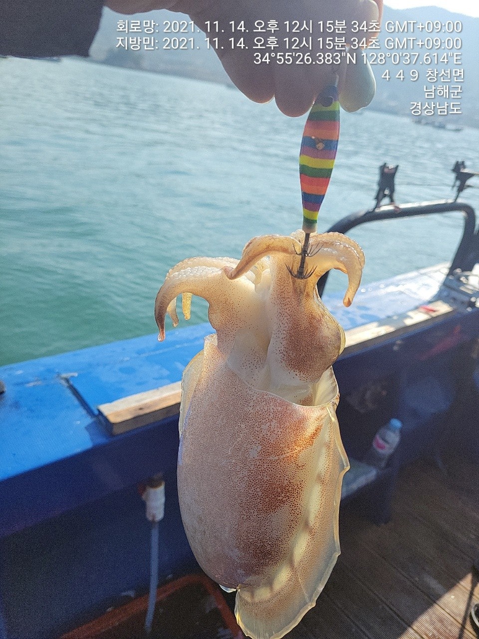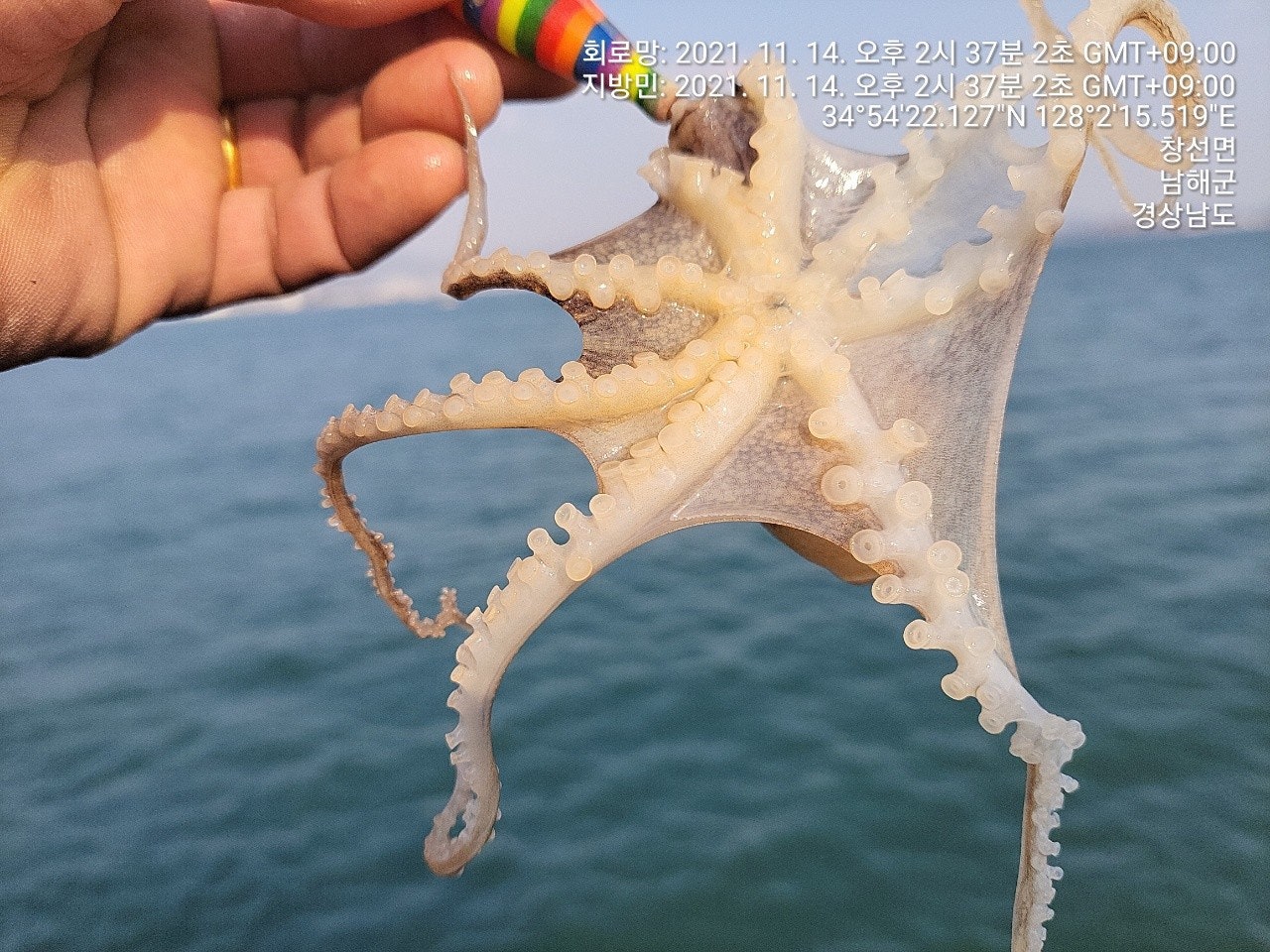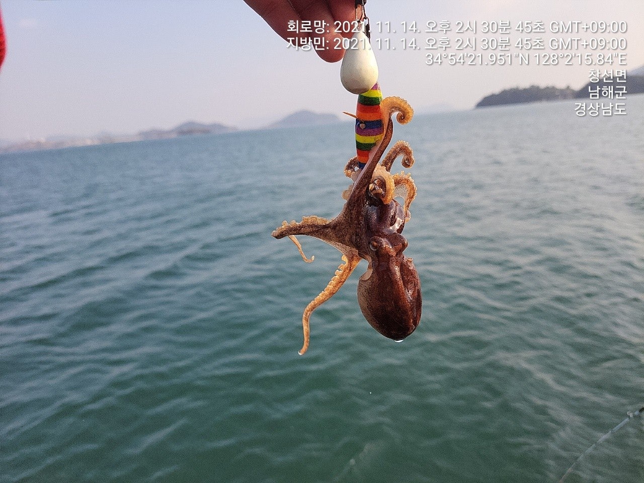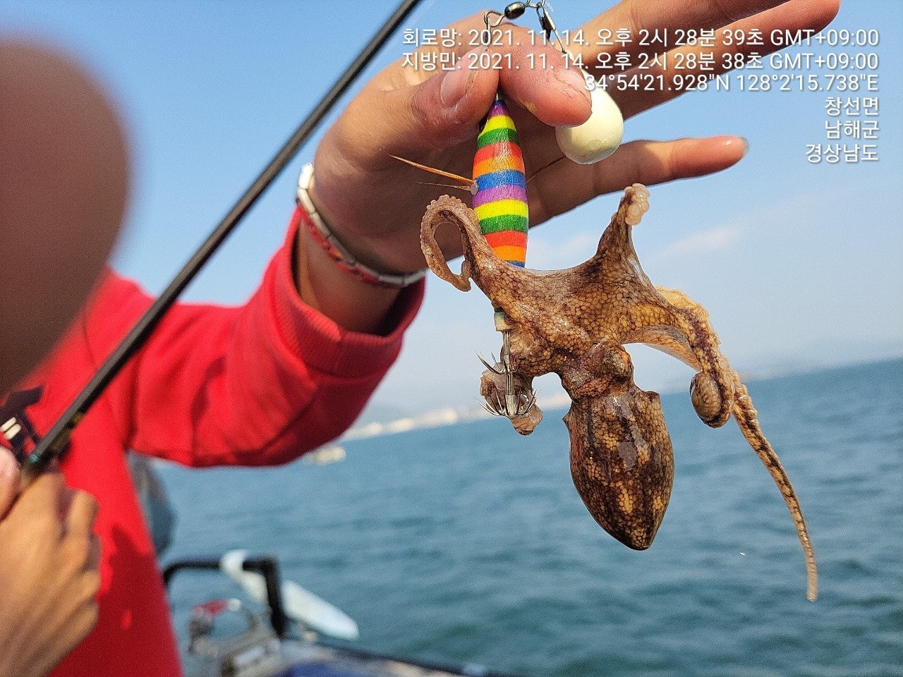 징어만 입질이 들어 오는 장면과 덤으로 씨알 굵은 돌문어까지 나왔었던 재