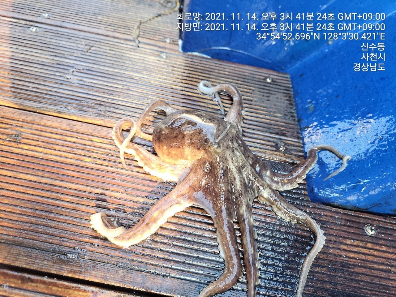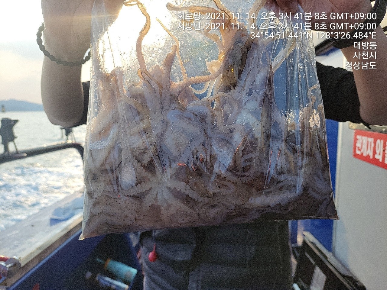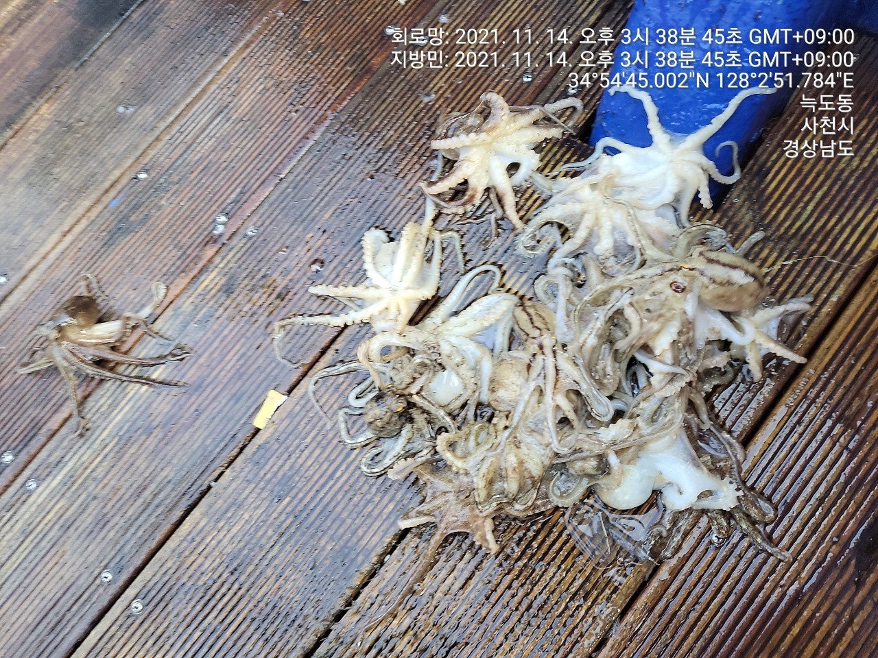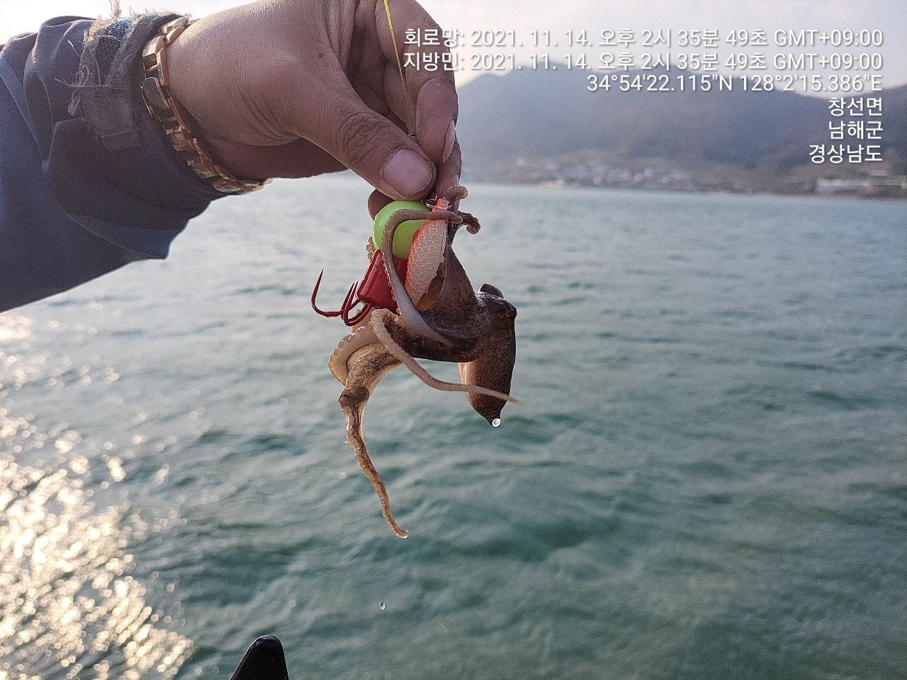 징어만 입질이 들어 오는 장면과 덤으로 씨알 굵은 돌문어까지 나왔었던 재