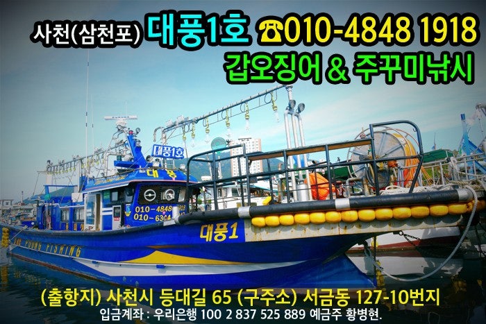 사천 주꾸미 갑오징어낚시 전문 출조 대풍1호입니다.