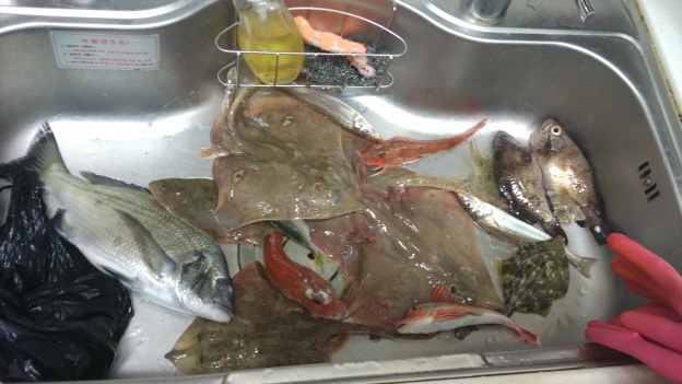 안녕하십니까.. 제품평가단에 선정해주신것 감사합니다..ㅎㅎ 통영권을 자주다니다 보니 코스상 경마공원을 가지못해서 .... 1월 7일 토 통영 연명마을 내만권에 카고 출조를 다녀 왔습니다. 미끼는 크릴, 경단 밑밥에 추가로 멍개밑밥을 현장에서 섞어 넣었습니다. 밑밥에서 신선한 멍게향이 나서 인상적이네요.. 지금 생자리 탐방이라 조과가 그닥 좋지 못할것 같아 걱정이였지만 나름 선방한것 같네요 경단 결속력은 아주 좋더군요 잡어가 많을시 아주 효과적일것 같습니다.. 빠른 조류속에서도 5분.10분뒤 카고를 걷어들여도 원형을 유지 하고 있었습니다. 수온이 낮아서 그런지 시원한 입질 패턴이 없는게 2%로 부족하더군요.. 가오리는 참 좋아라 하네요..ㅎㅎ 2마리 ..잡았네요 경단을 바늘에 끼고 냄세를 맡아보니 좀 향이 작은것 같은데 향을 좀더 보강하면 조과에 많은 도움이 될것 같습니다 . 멍개 밑밥은 일반 밑밥을 한단계 더 업그레이드 시켜 주는것 같습니다.