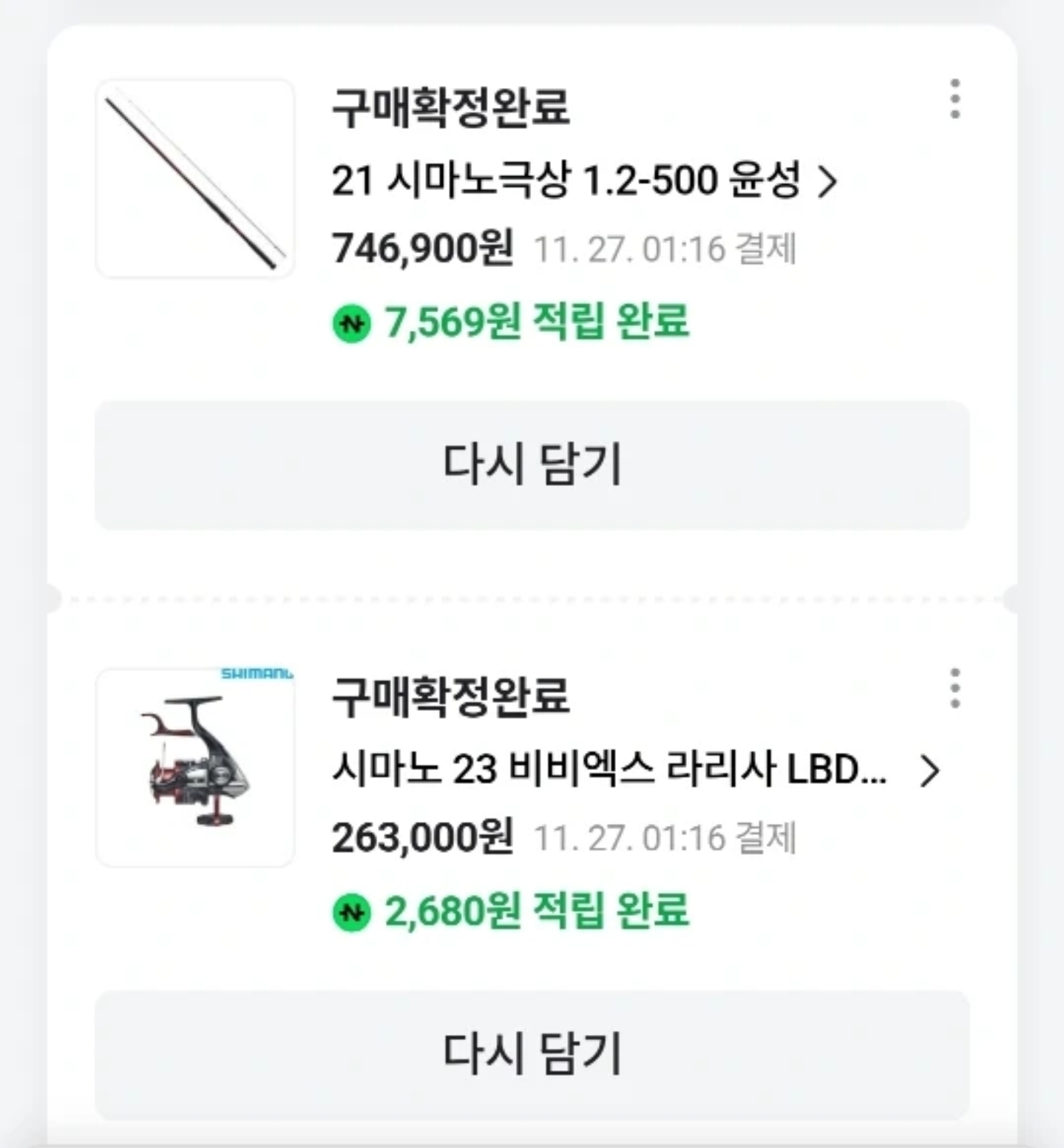 6. 물품상태 : 1회 선상 출조 후 세척, 새상품 같은 수준, 둘다 직구 아닌 윤성 보증 정품입니다.
