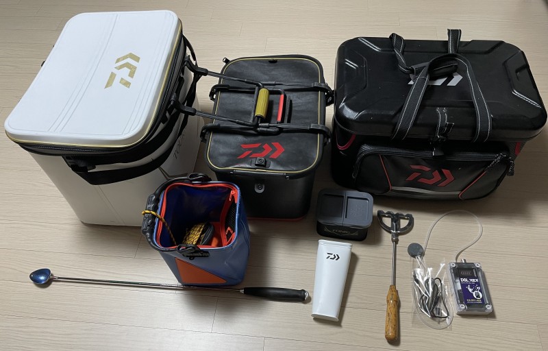 토너 키퍼바칸(45)+토너 바칸(40)+다이와 쿨백(38)+충전식 기포기+주걱/쏠채/미끼통/두레박 세트