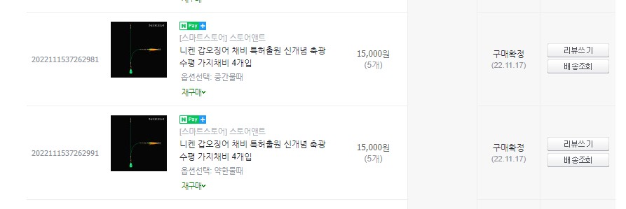 쭈갑 수평 채비는 한개 뜯어서 실험은 해보았습니다 (하나에 채비가 4개 들었는데 그중 한개만 실험 해봤습니다)