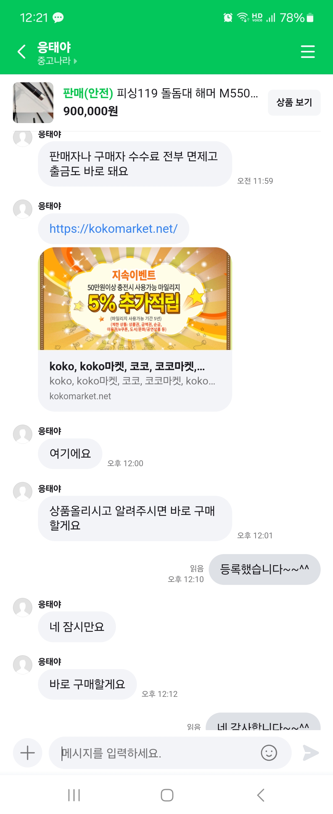 코코마켓이라고 url을 보내주면서 올려달라고 합니다.