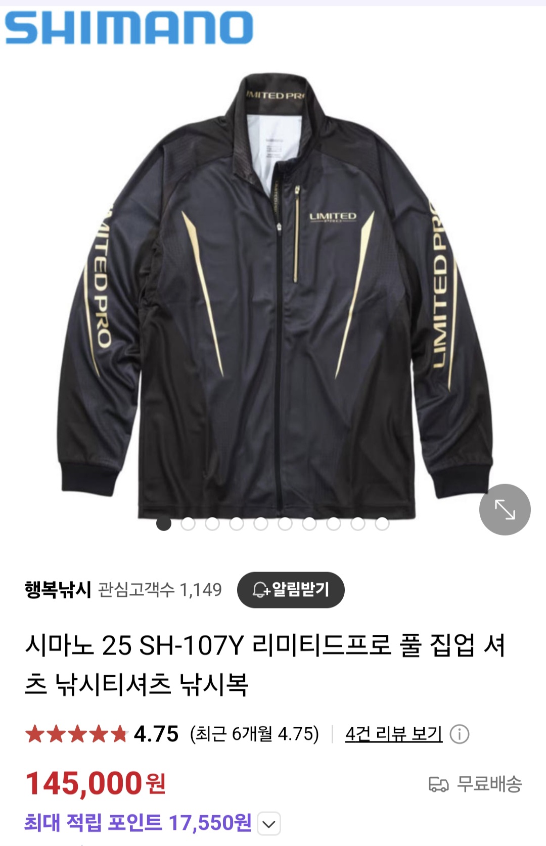 시마노 리미티드 프로 풀 집업 셔츠 L사이즈