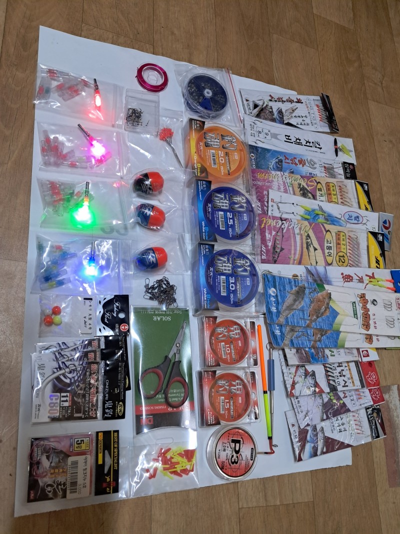 목줄. 구멍찌 200개봉돌 우레탄10미터. 자작전자케미40여개.