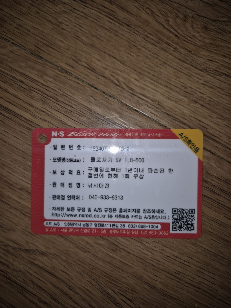 1. 물품명 :NS클로져기VS 1,8 호500 1회보증서 있음.