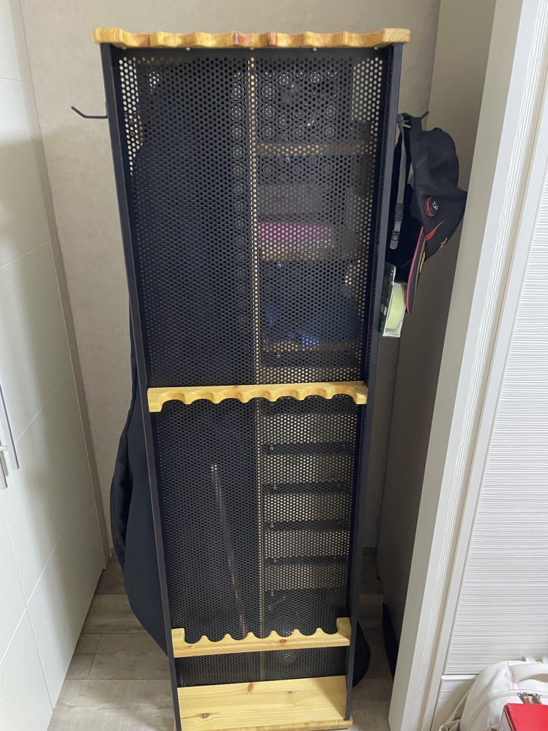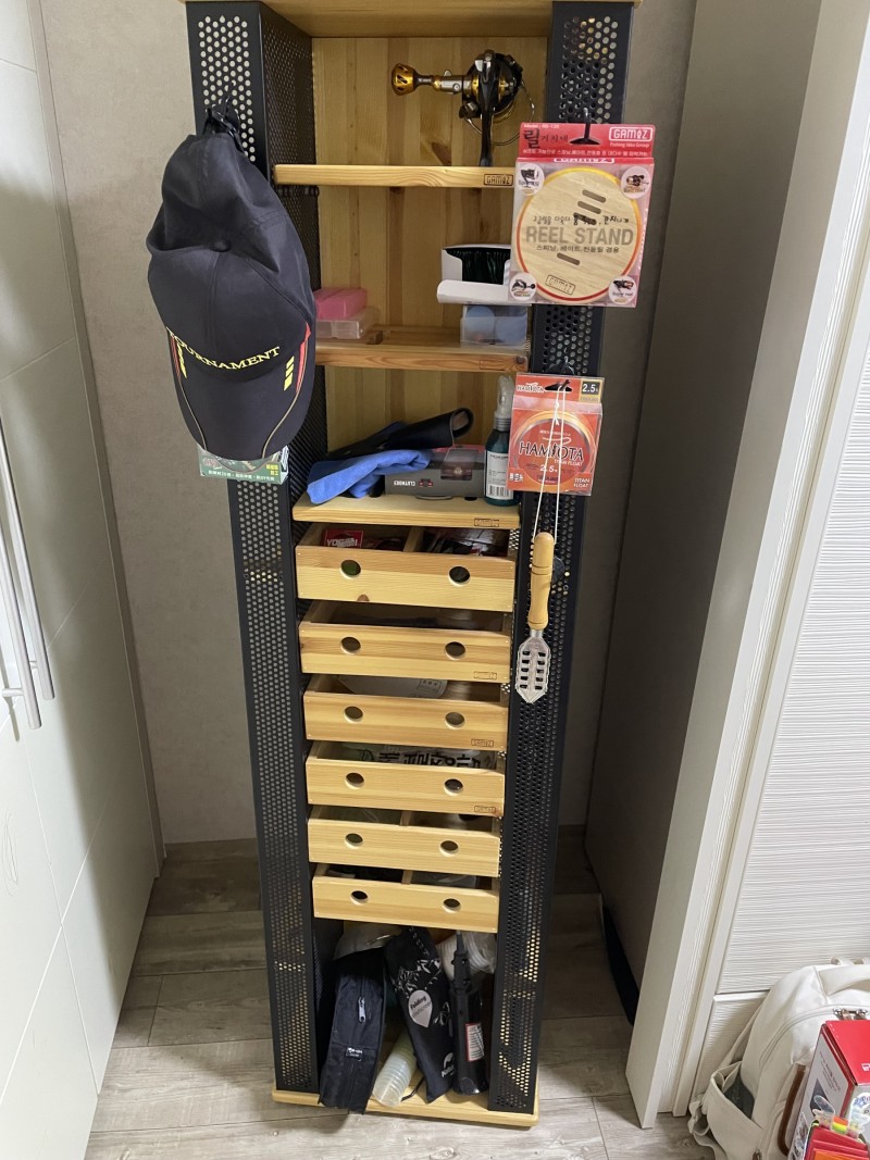 ■ 상세 설명 :네이버에 가미즈 해품장 이라고 검색하면 나오는 제품입니다. 구입은 한 오년전에 해서 정확한 모델은 기역이 안나고 사진보시면 4개면에 가방,로드,악세사리를 보관 할 수 있는 제품입니다. 회전해서 좁은 공간에 사용하기 좋습니다.