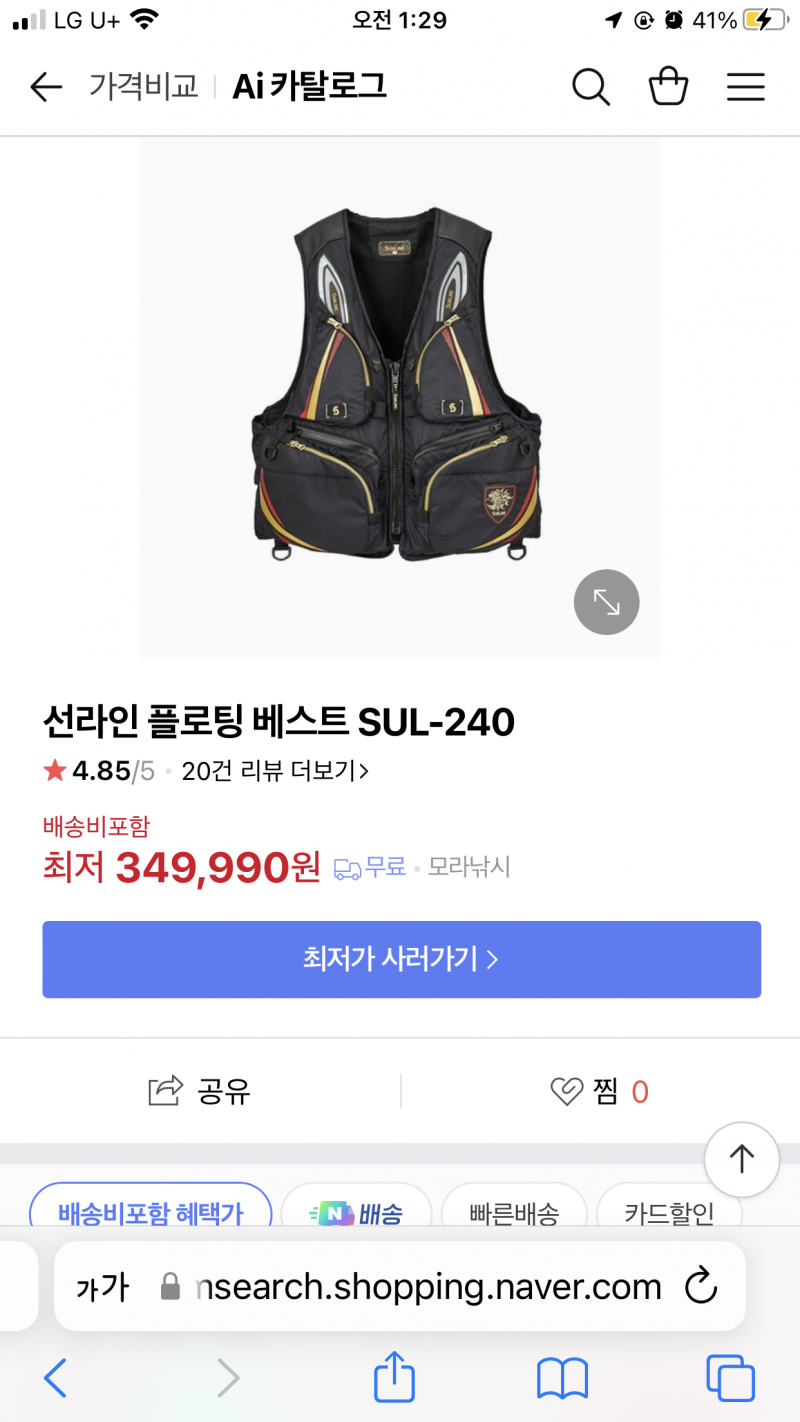 선라인 구명복 LL판매합니다
